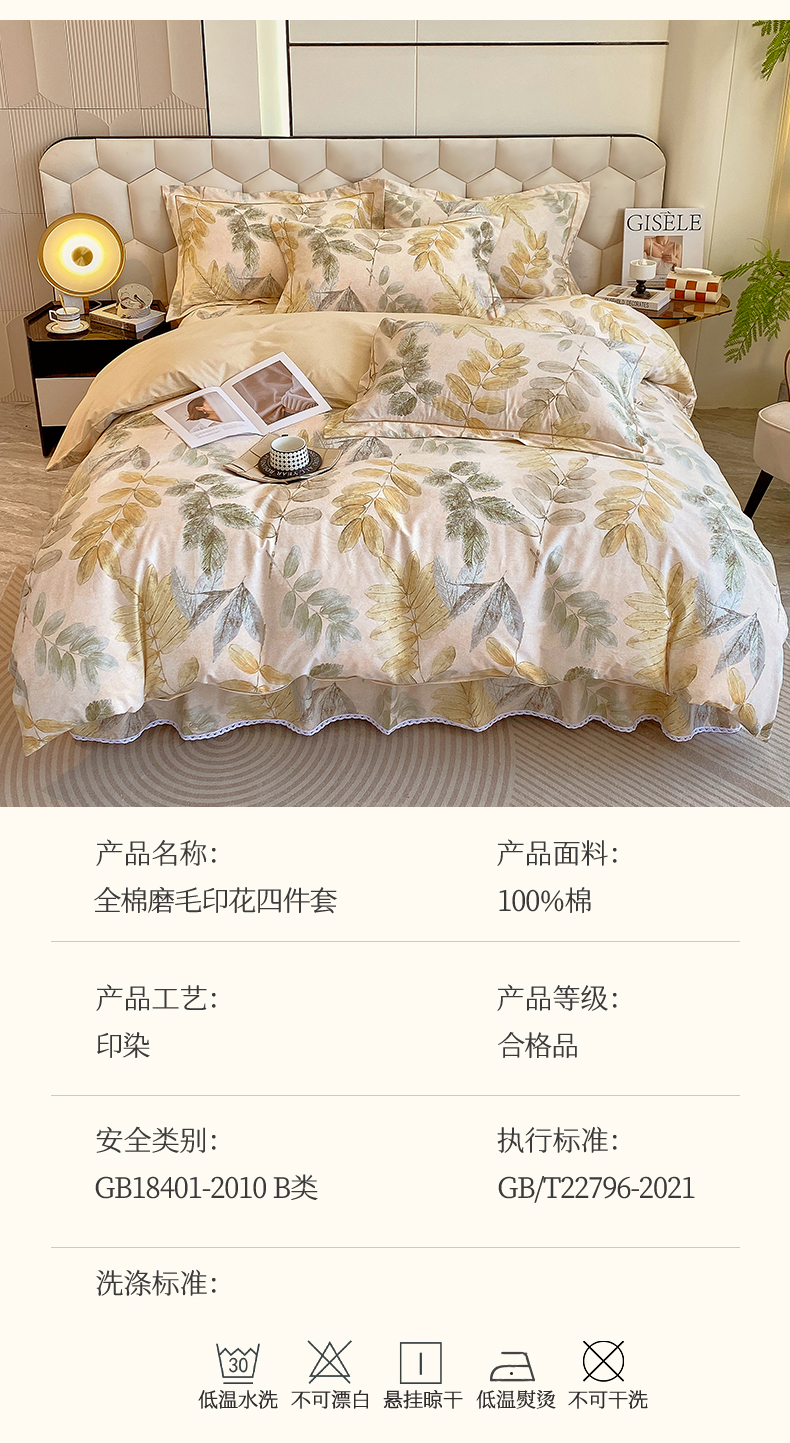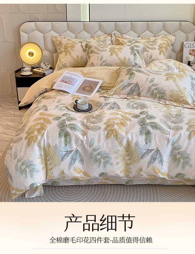 当前位置: 91家纺网 > 商品网购 > 床品套件 > 四件套 > 全棉普通四件套 > 2024新款全棉磨毛印花四件套系列 白月光