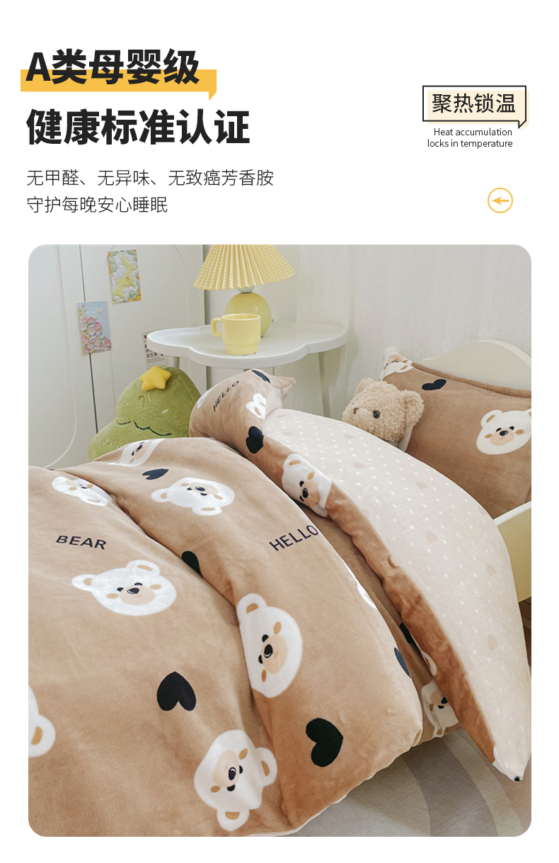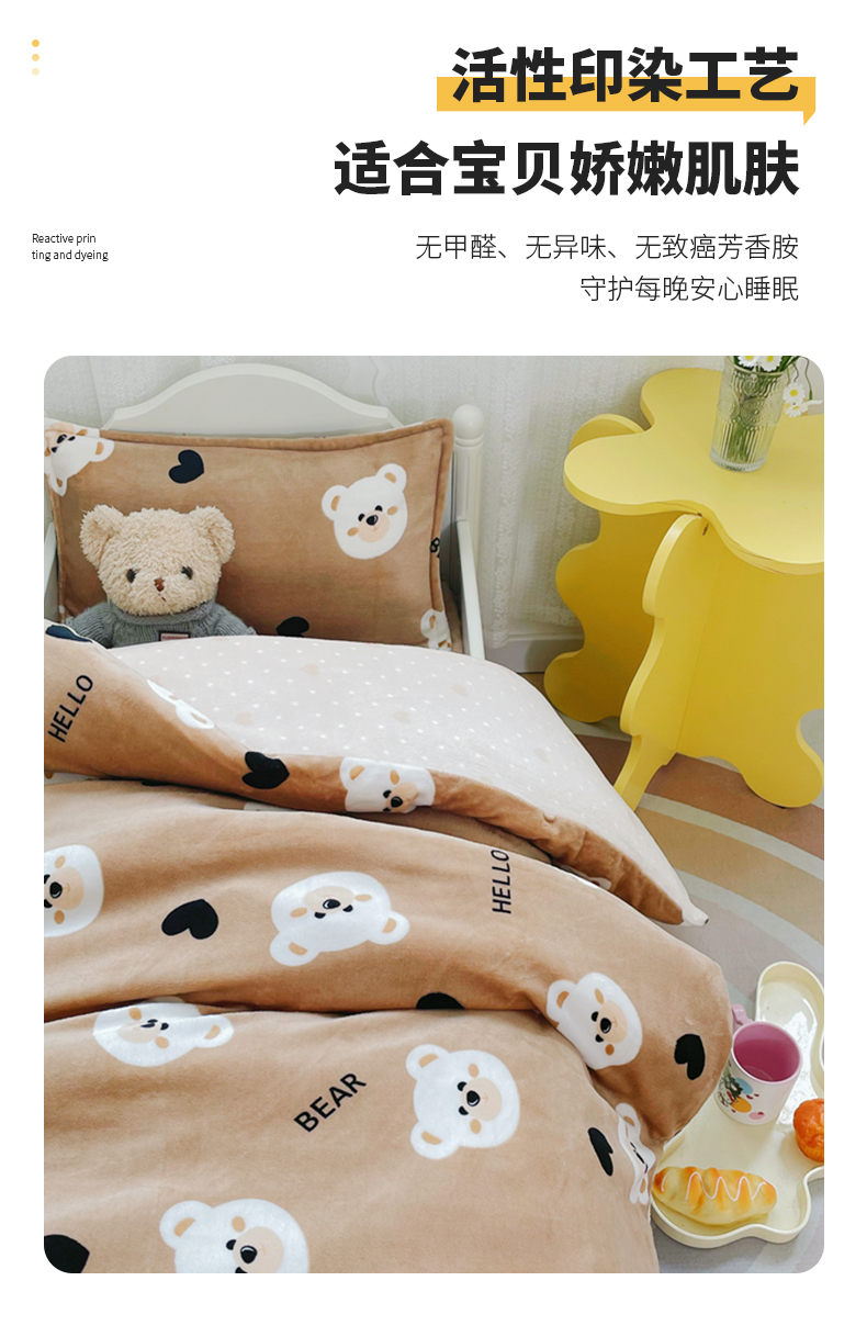 禧缘家纺(原梦想家) 2024新款儿童牛奶绒三件套 可可熊