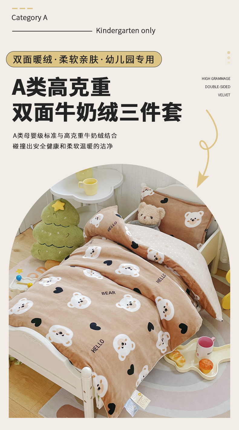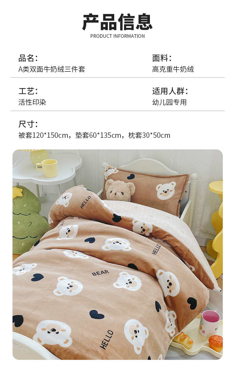 商品名称:禧缘家纺(原梦想家) 2024新款儿童牛奶绒三件套 可可熊