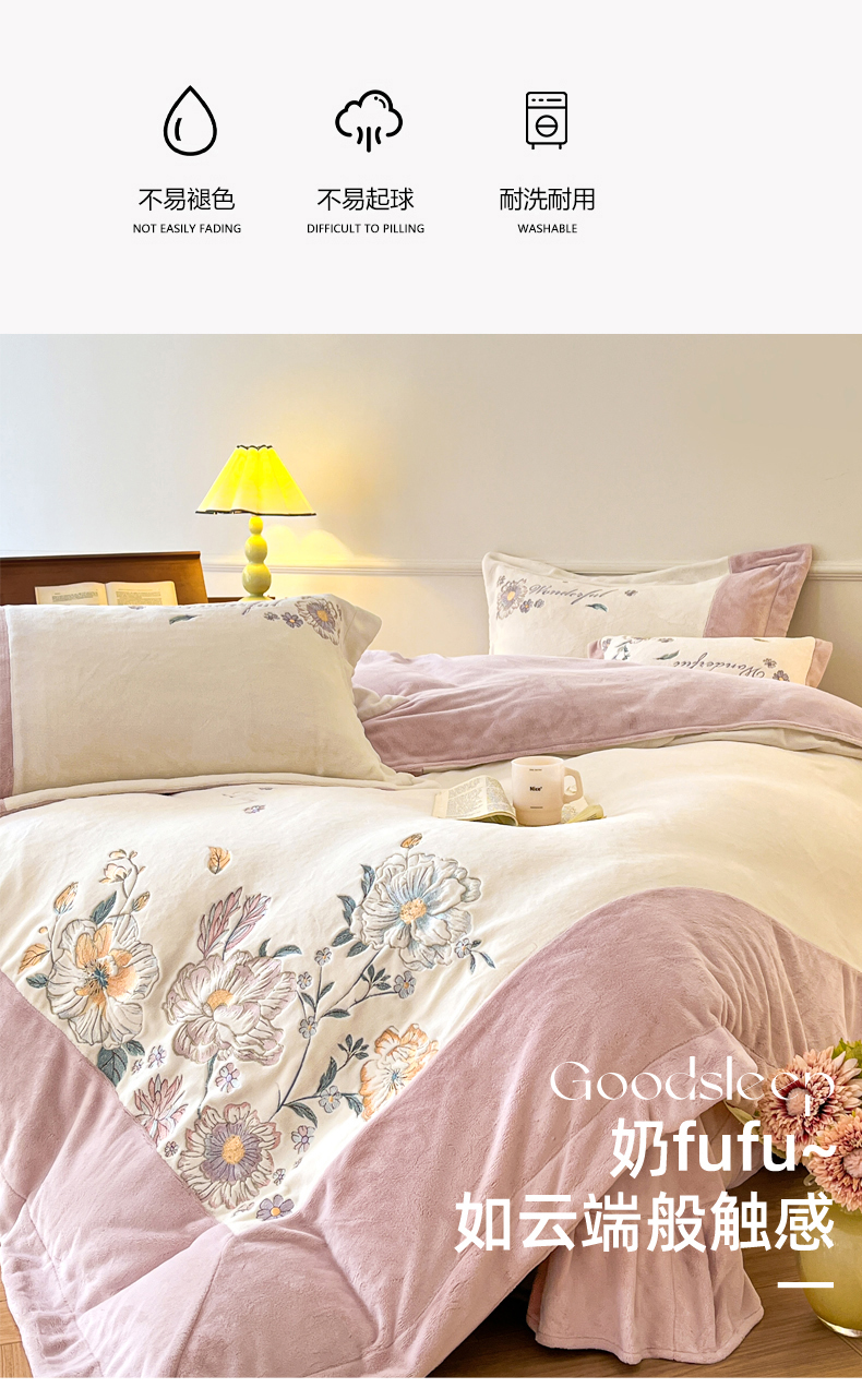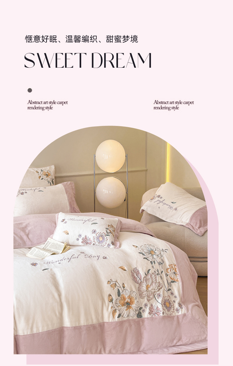 (总)艾唯希家纺 2025新款韩式牛奶雕花绒工艺全消光立体刺绣公主风四件套-忆江南,忆江南-粉,忆江南-蓝,忆江南-紫