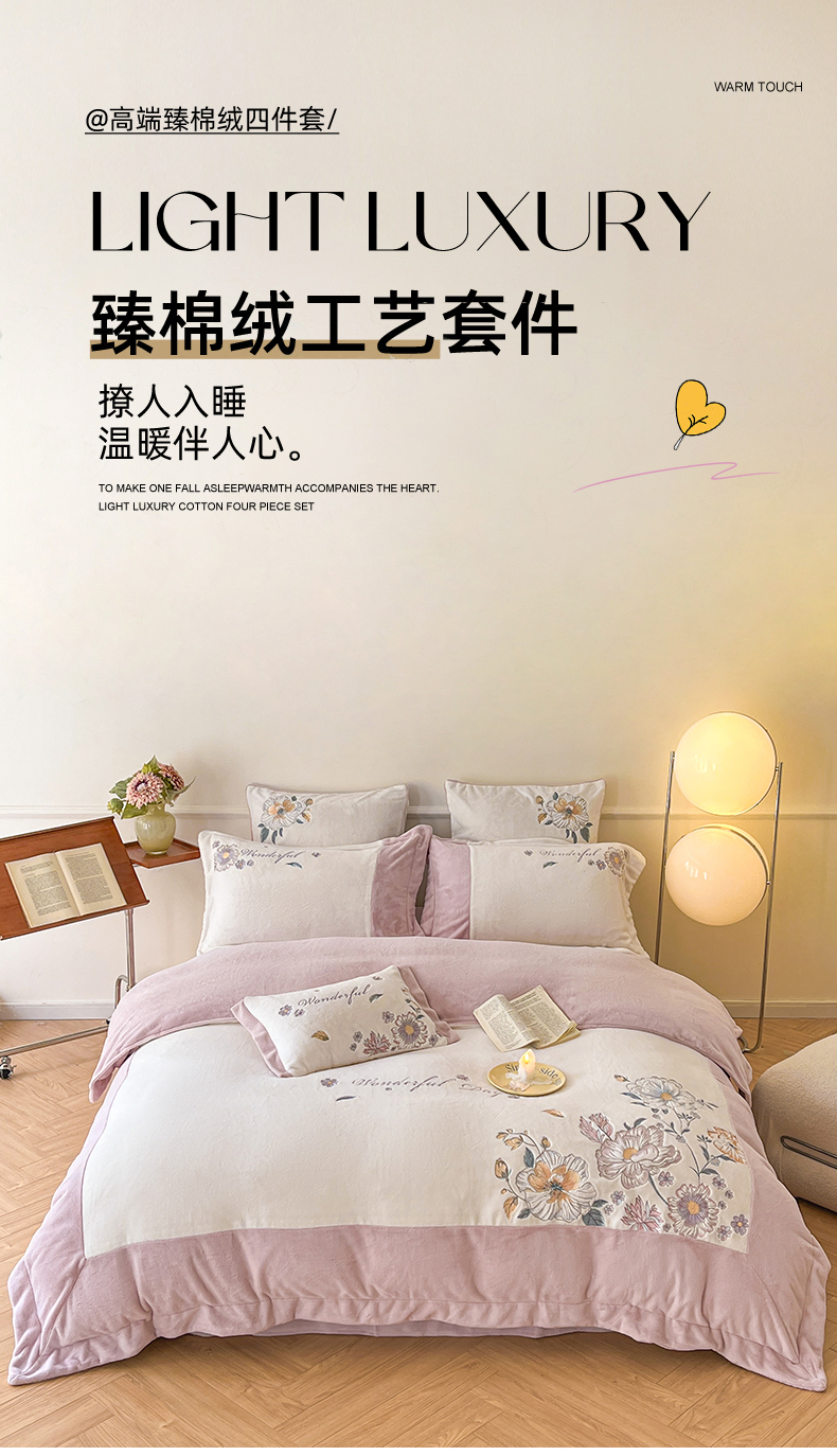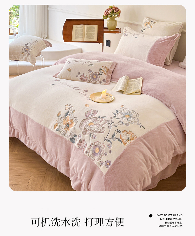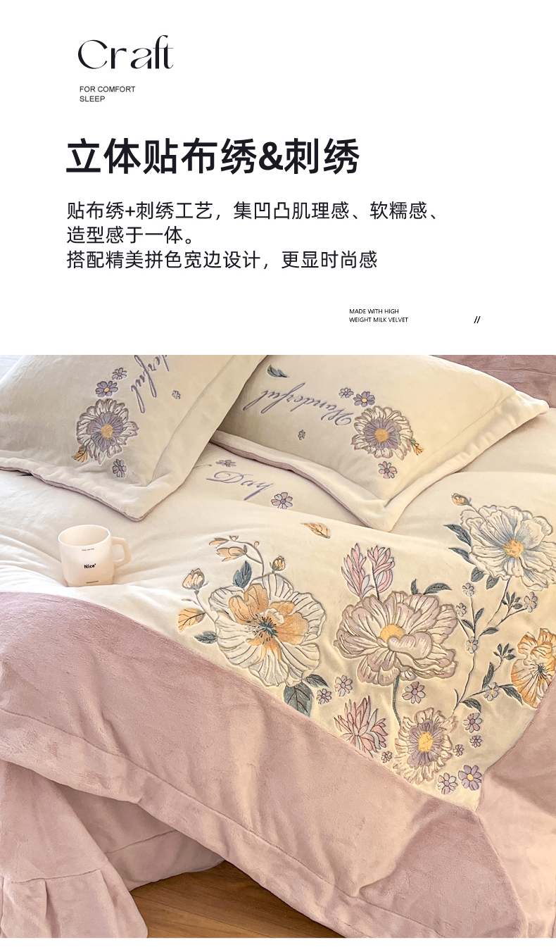 (总)艾唯希家纺 2025新款韩版全消光雕花绒工艺四件套牛奶绒-郁金之恋,郁金之恋-紫,郁金之恋-粉,郁金之恋-蓝