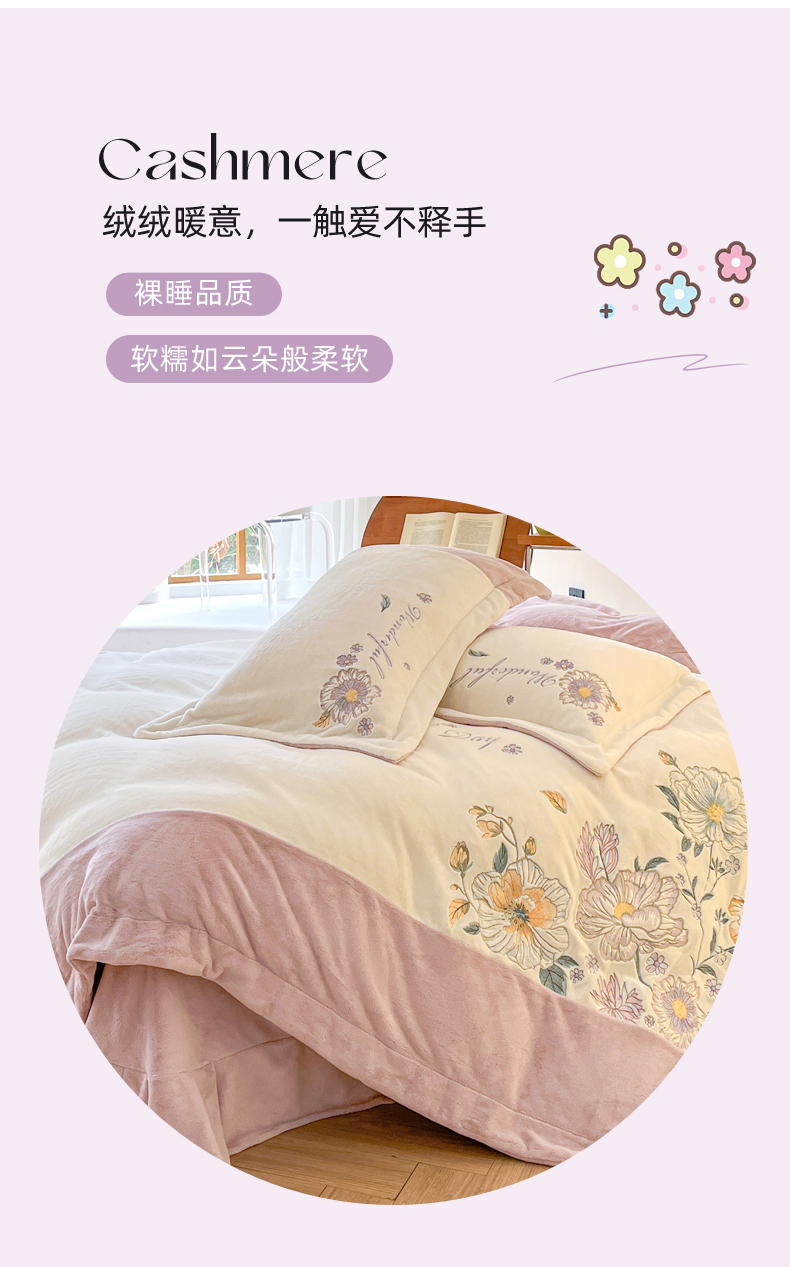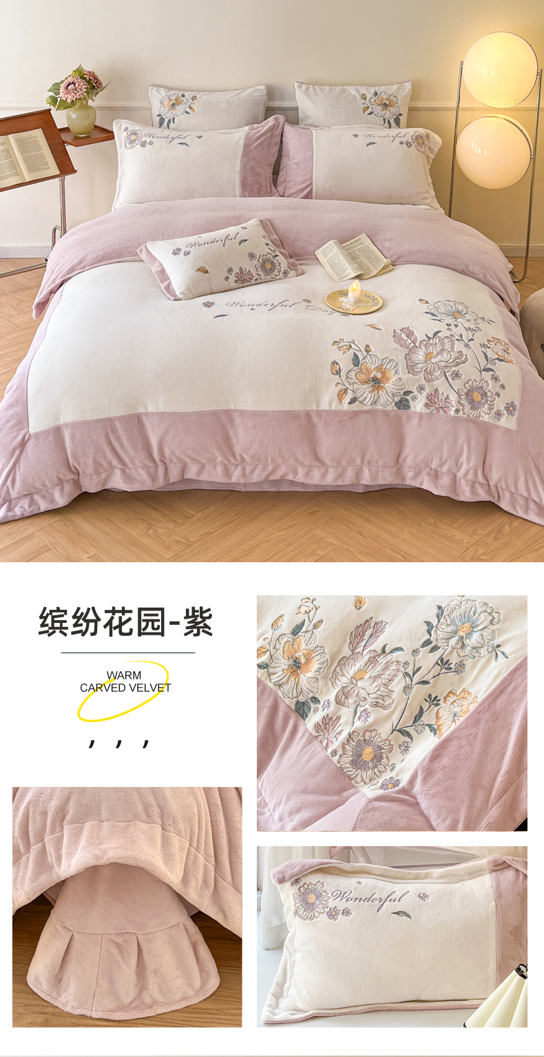 艾唯希家纺 2024高端臻棉绒工艺四件套高克重牛奶绒珊瑚绒宝宝绒-缤纷花园系列 缤纷花园-紫