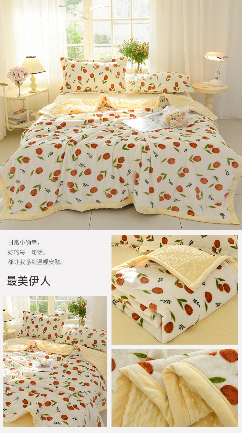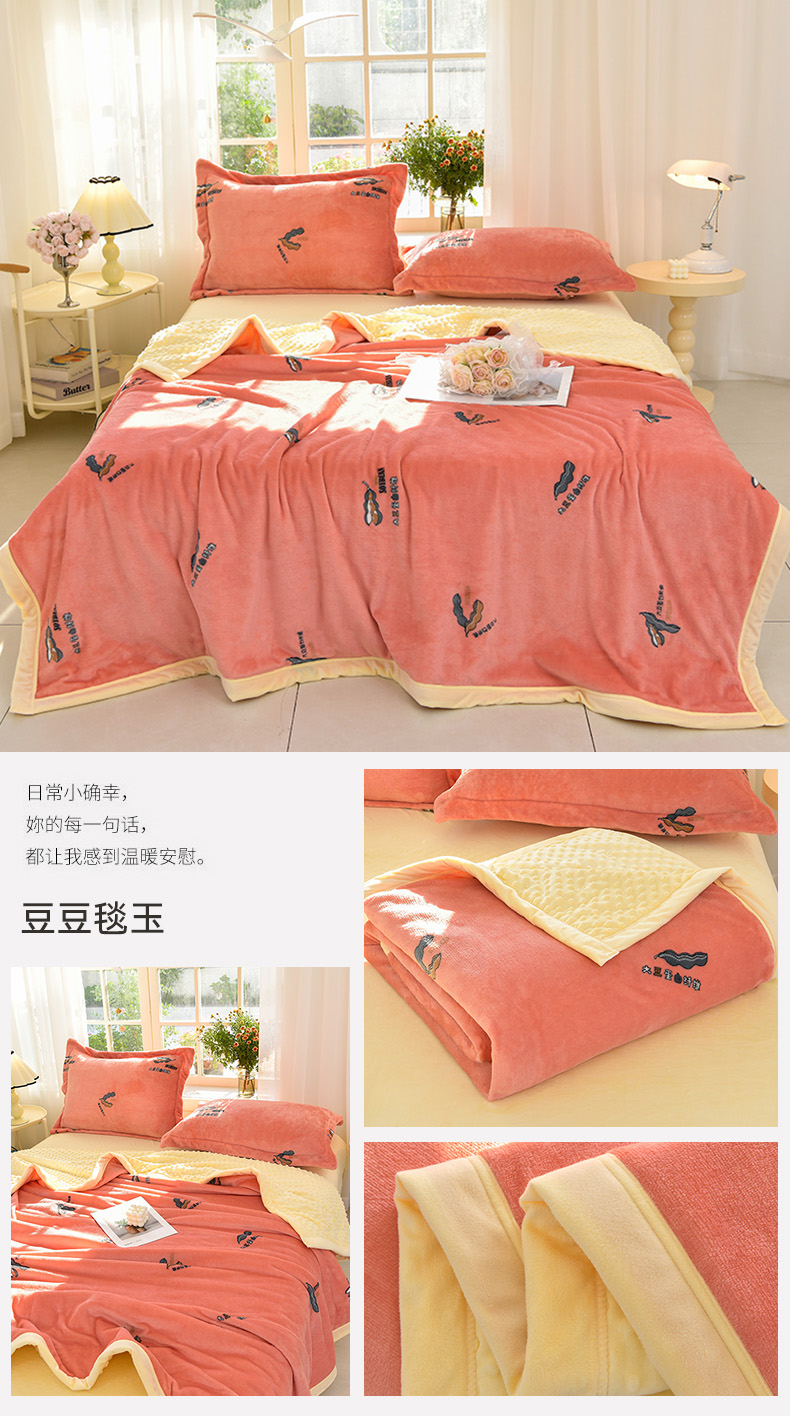 圣楚家纺 2024新款豆豆绒三层毛毯毯子 豆豆毯玉