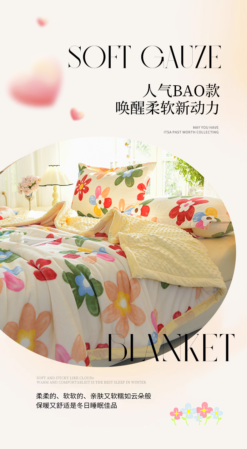 (总)圣楚家纺 2025新款牛奶绒羊羔绒双层毯盖毯毯子,花漾色彩,蓝色天空,迷人花香,邂逅彩虹
