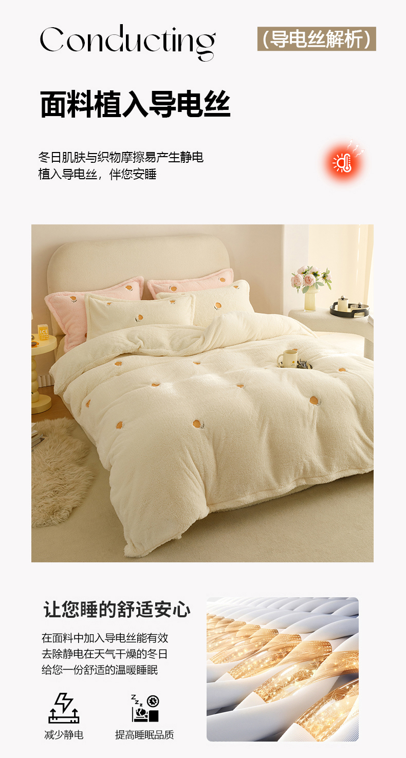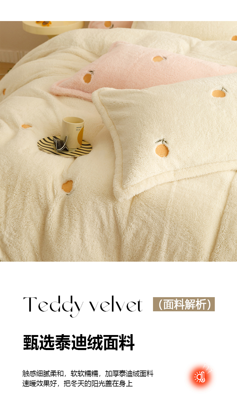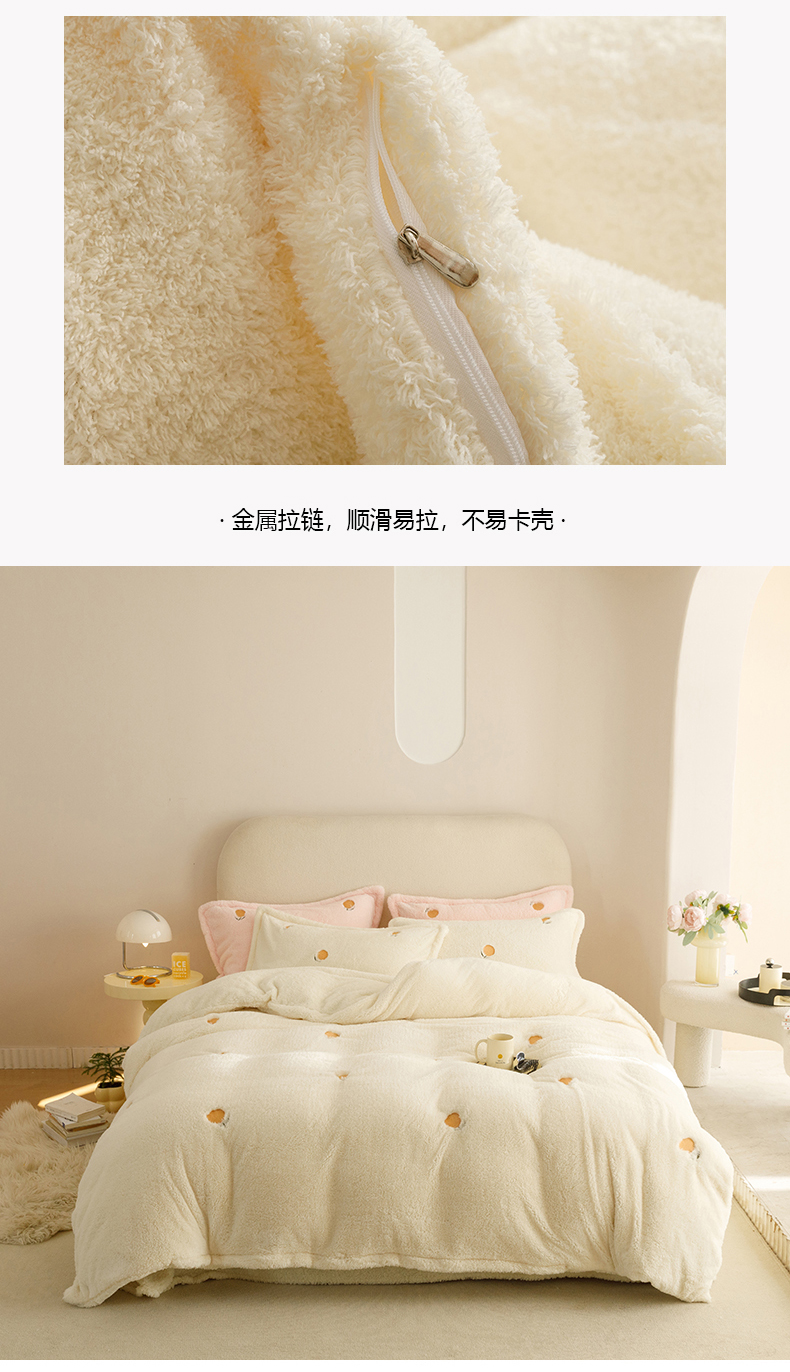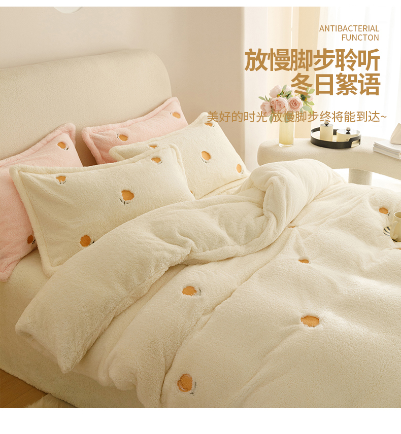 商品名称:金奇达家纺 2025秋冬保暖加厚绒类【泰迪绒小刺绣】四件套 温暖郁金香白