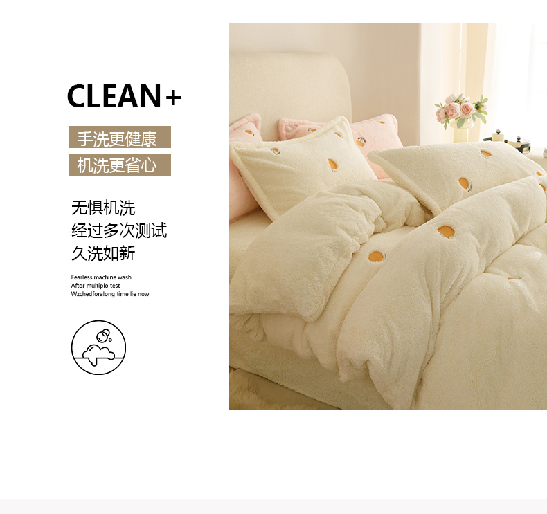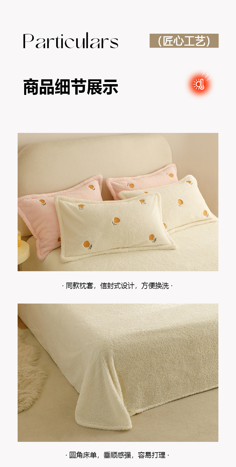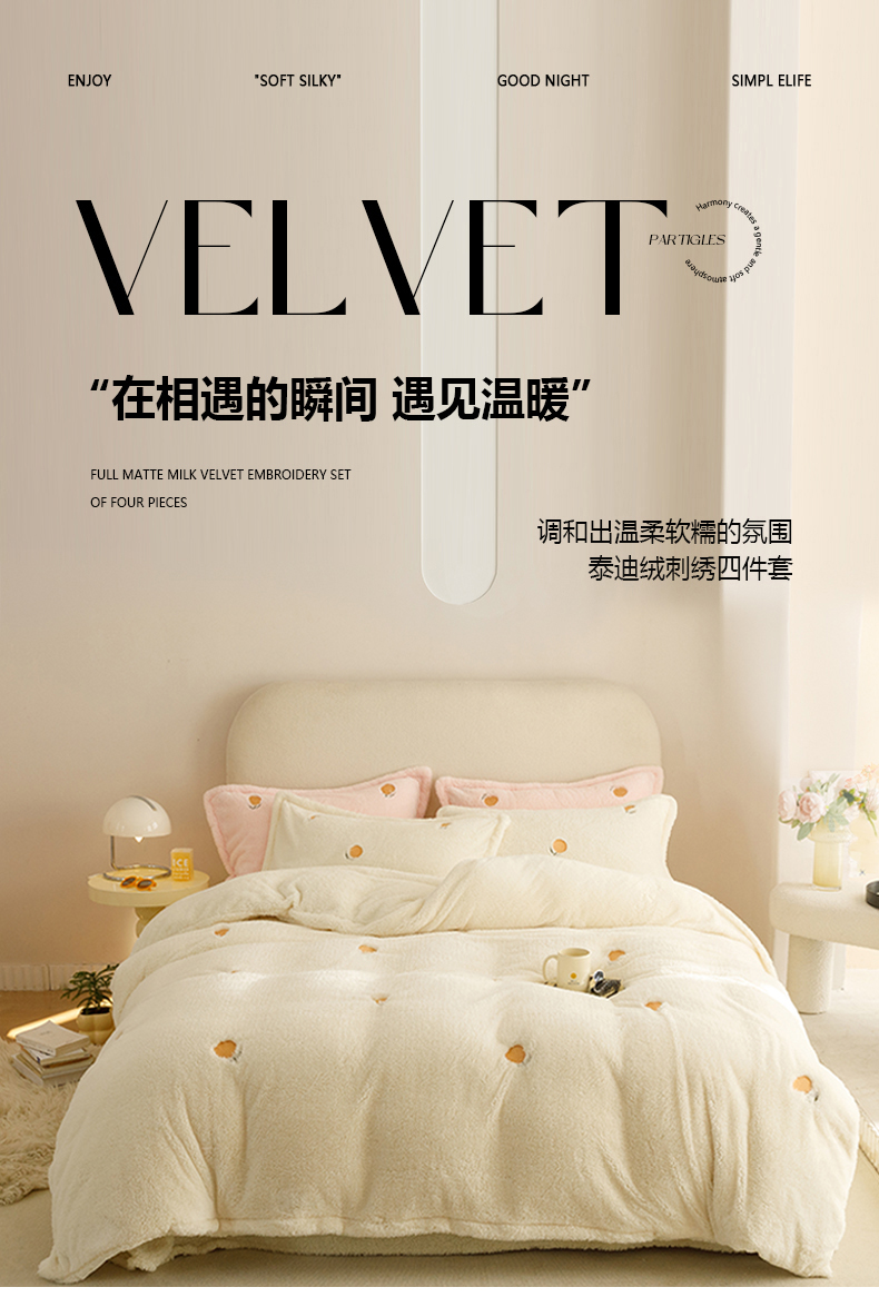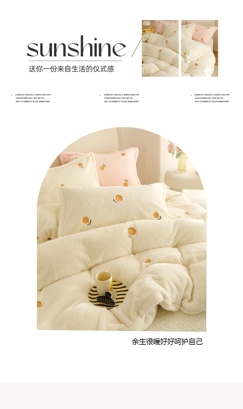 商品名称:金奇达家纺 2025秋冬保暖加厚绒类【泰迪绒小刺绣】四件套 温暖郁金香白