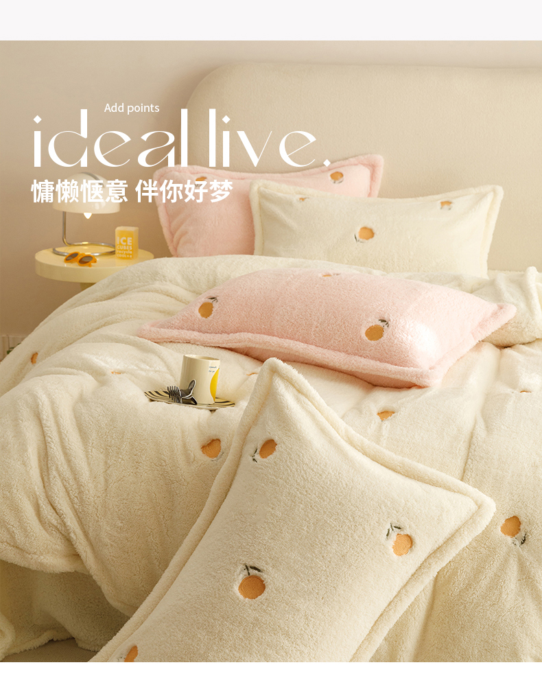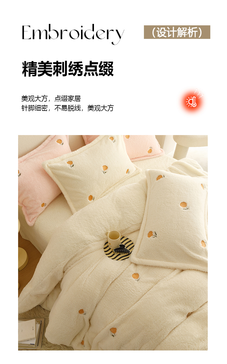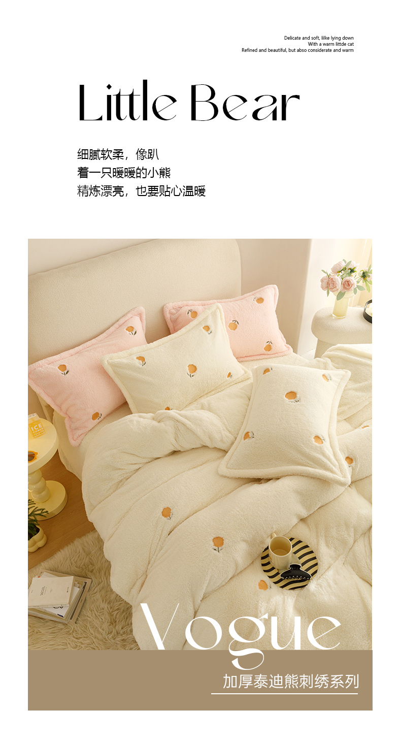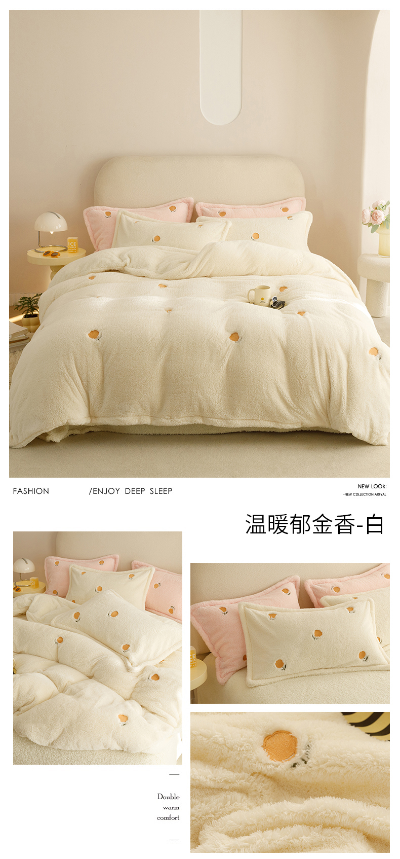 金奇达家纺 2025秋冬保暖加厚绒类【泰迪绒小刺绣】四件套 温暖郁金香白