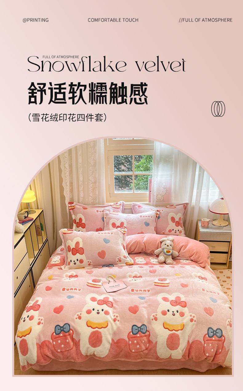 (总)川悦生活 2025新款立体雪花绒印花大床四件套系列一场景一,爱米兔,冰激凌小熊,波波熊,彩虹爱心粉,彩虹爱心蓝,彩虹爱语粉,彩虹爱语蓝,藏蓝星语,哒哒鸭丫,嘎嘎小熊,花田米兔,花园蝴蝶,橘兔,可爱熊,快乐鸭鸭,蜜语奶兔,奶芙小花,奶咖小熊,奶味云朵,妮娜兔,泡芙小兔,巧克力熊,秋语-红豆,少女小兔,塔丽小熊猫,桃心爱语,甜蜜日常粉,甜系粉熊,甜系龙龙,甜心花田,小狗物语,小熊花园,小雪狗,小郁金,幸福甜兔,熊小巴,樱桃啵啵,郁金奶兔,云朵奶狗,ins樱桃,lucky熊猫