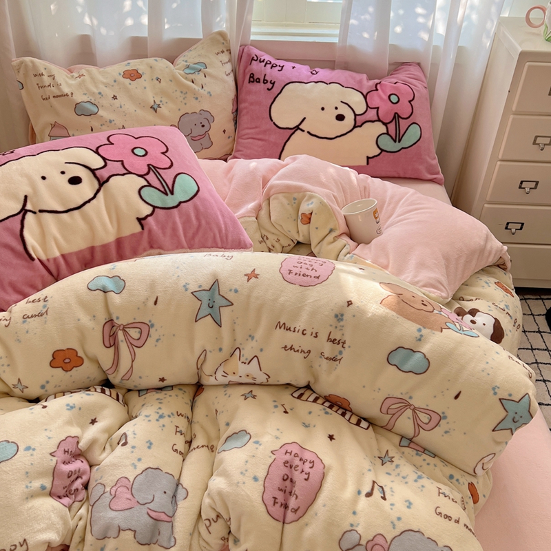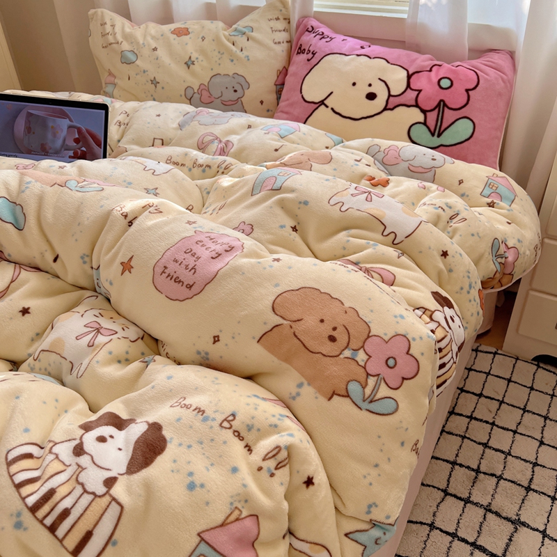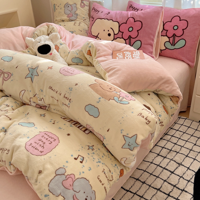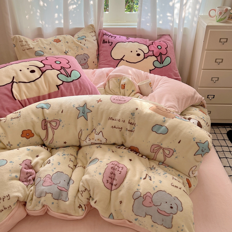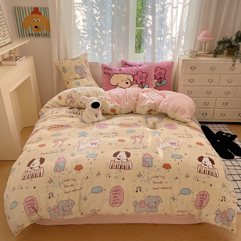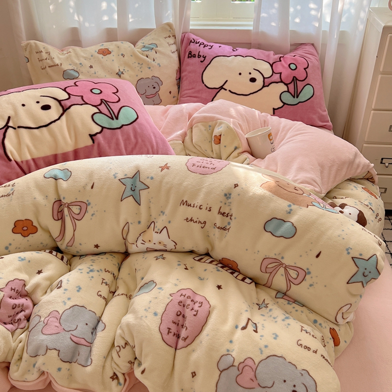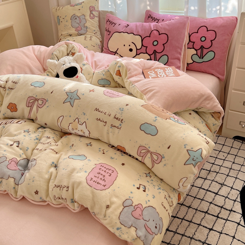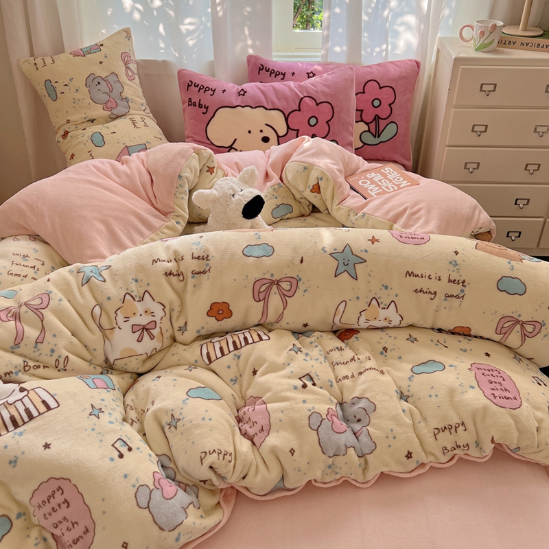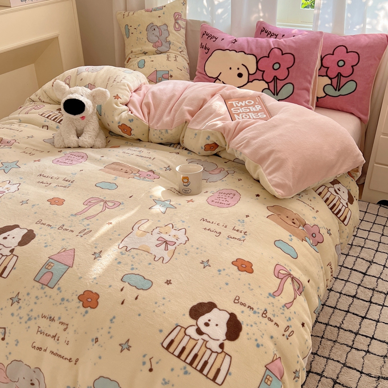 桃喜 2024秋冬新品卡通混搭牛奶绒系列四件套 猫狗日记