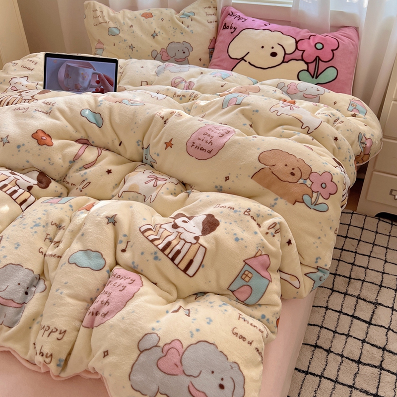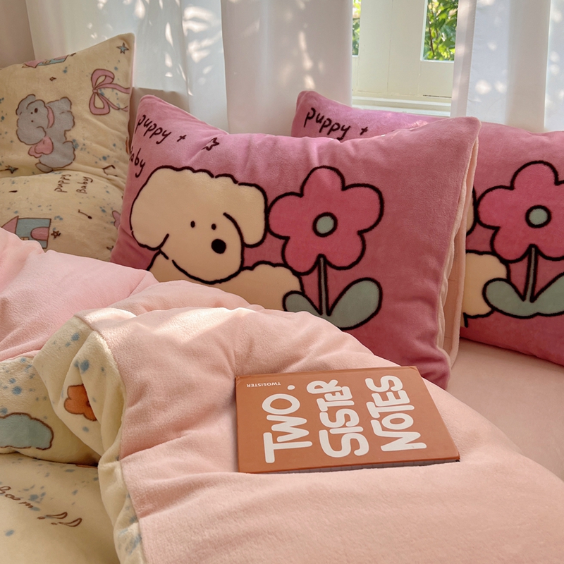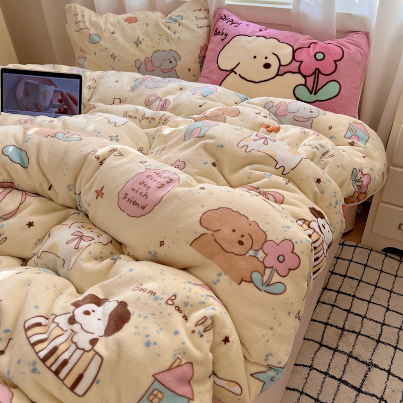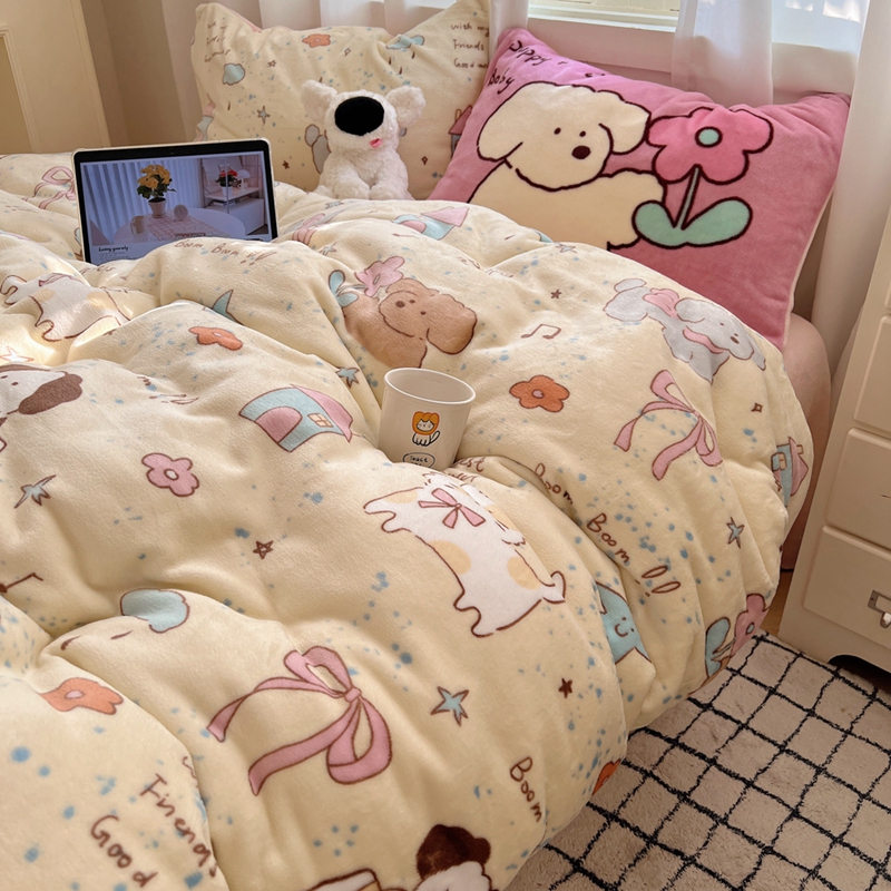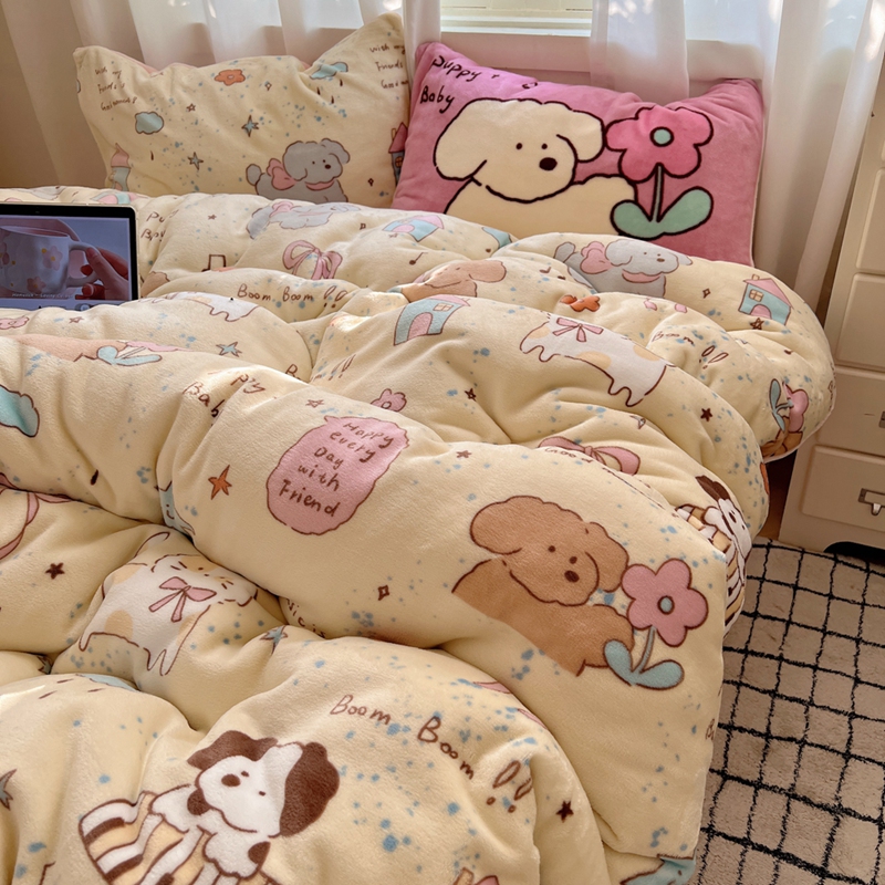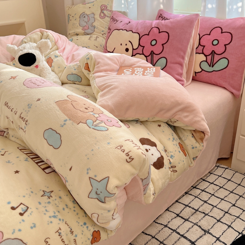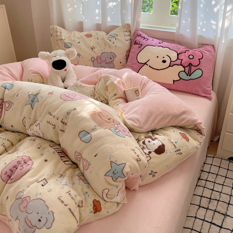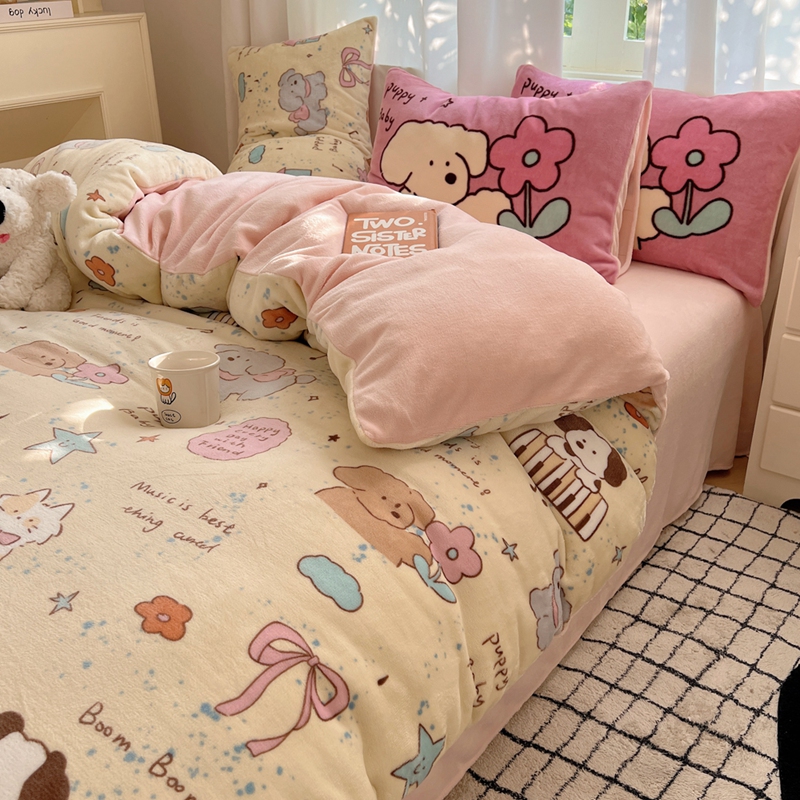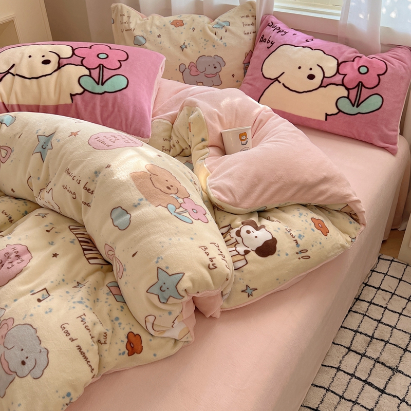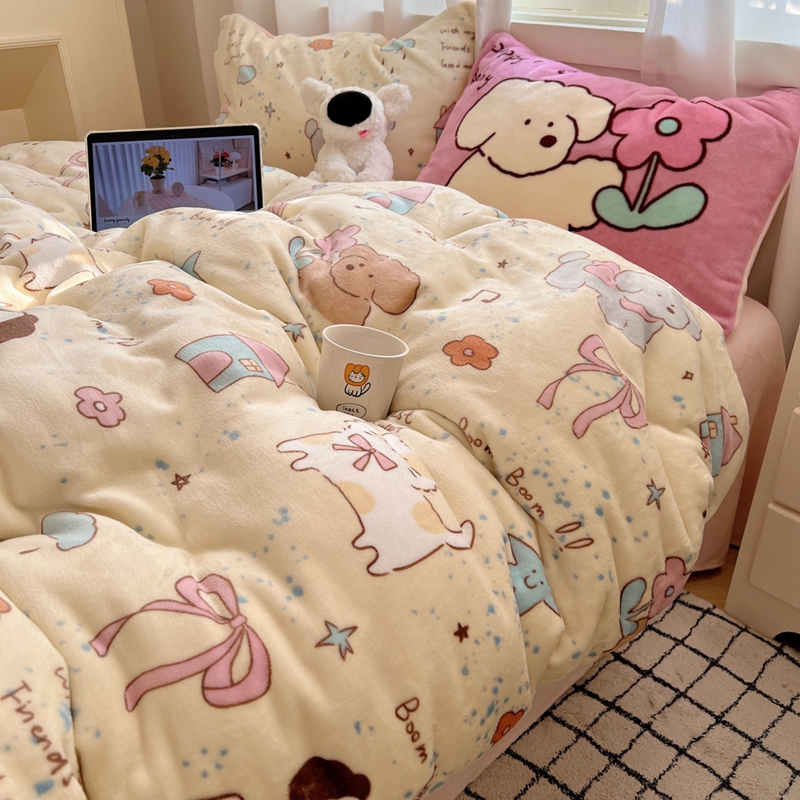 桃喜 2024秋冬新品卡通混搭牛奶绒系列四件套 猫狗日记