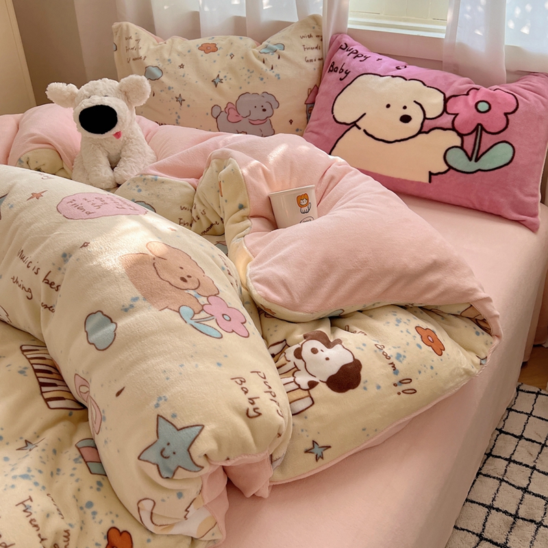 商品名称:桃喜 2024秋冬新品卡通混搭牛奶绒系列四件套 猫狗日记