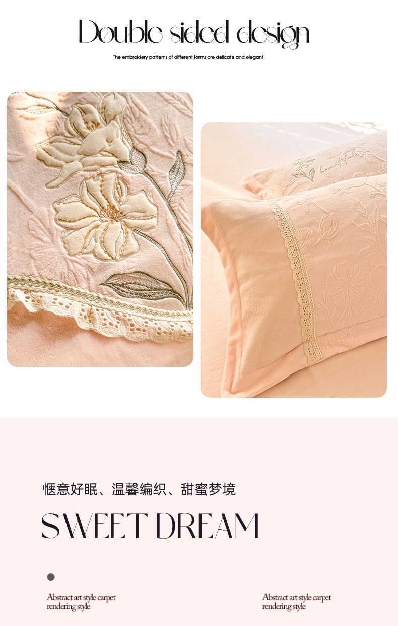 商品名称:艾唯希家纺 2024新款韩式牛奶雕花绒工艺四件套 忆江南-粉