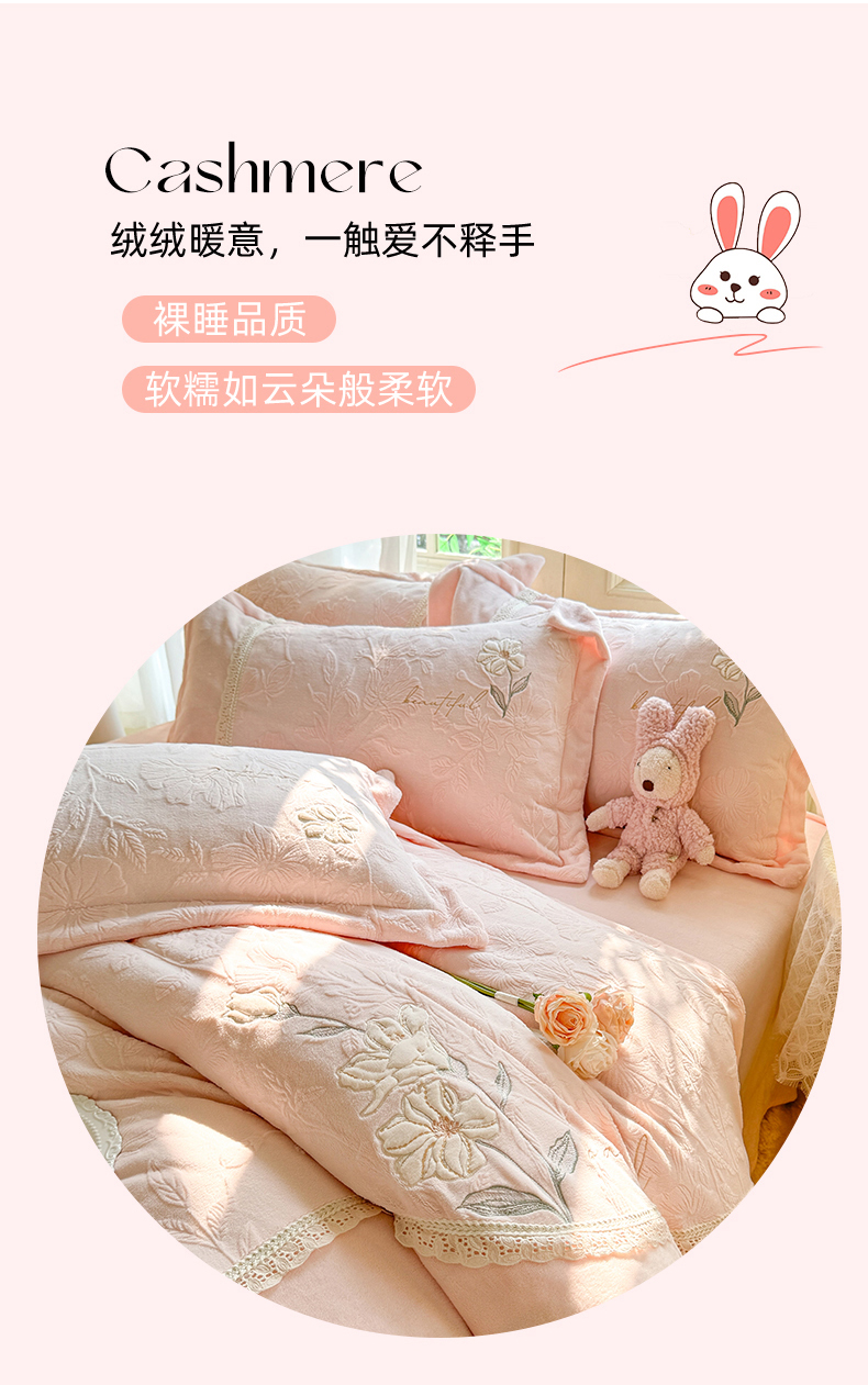 (总)艾唯希家纺 2025新款小兔毛全消光牛奶绒工艺四件套-绒樱桃系列,绒樱桃-粉,绒樱桃-驼