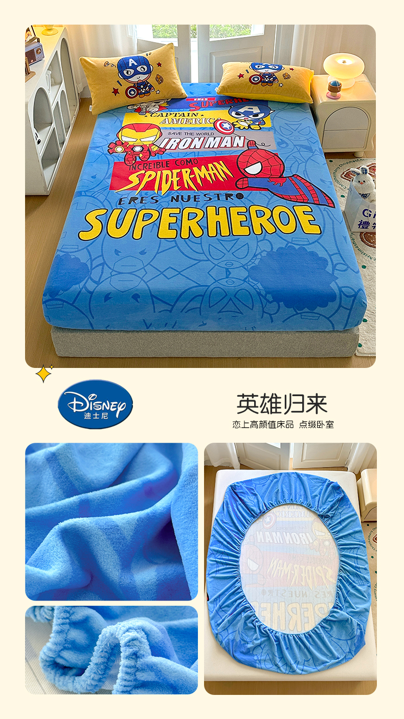 ds生活馆 2026新款大版数码印花牛奶绒单床笠 英雄归来
