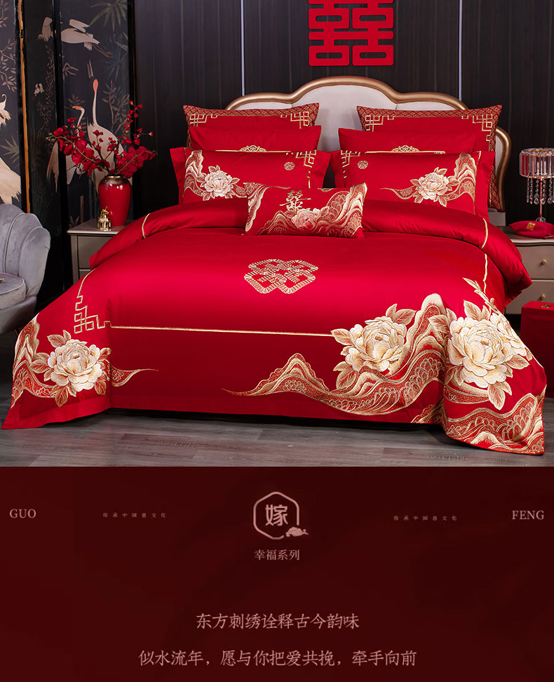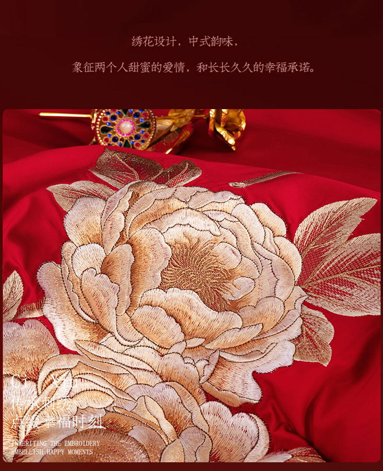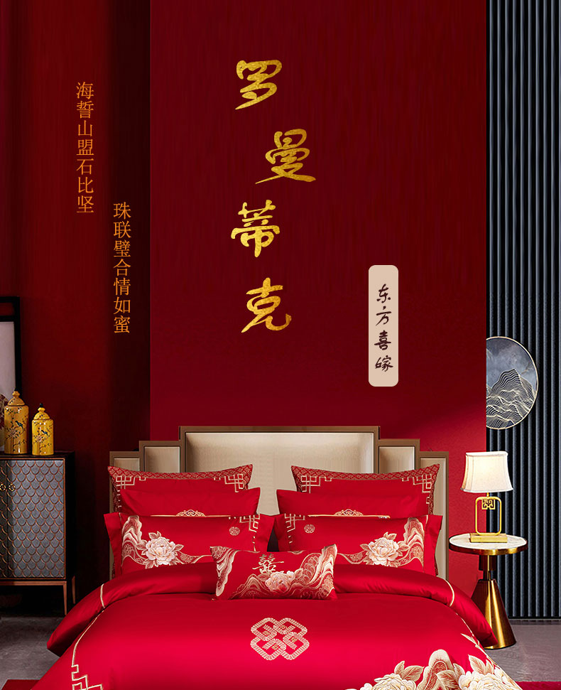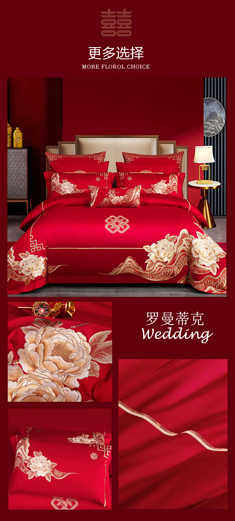 当前位置: 91家纺网 > 商品网购 > 床品套件 > 四件套 > 婚庆四件套 > 蒂爵 全棉纯棉1长绒棉刺绣高端时尚款婚庆四件套多件套 罗曼蒂克金
