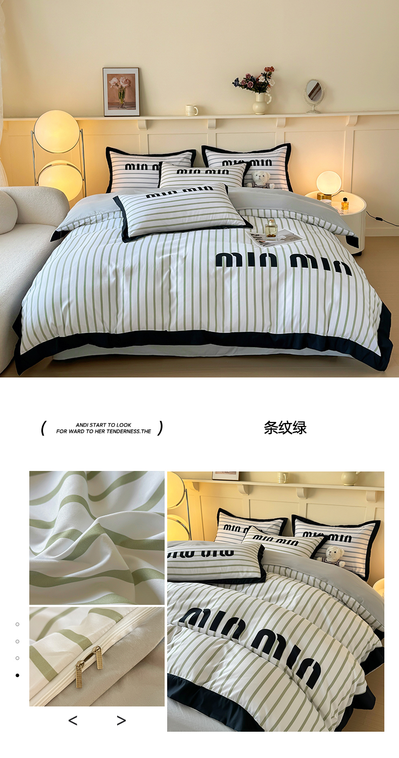 商品名称:花沐家居 2024新款亲肤云朵棉四件套加厚印花高克重磨毛四件套直播爆款 条纹绿