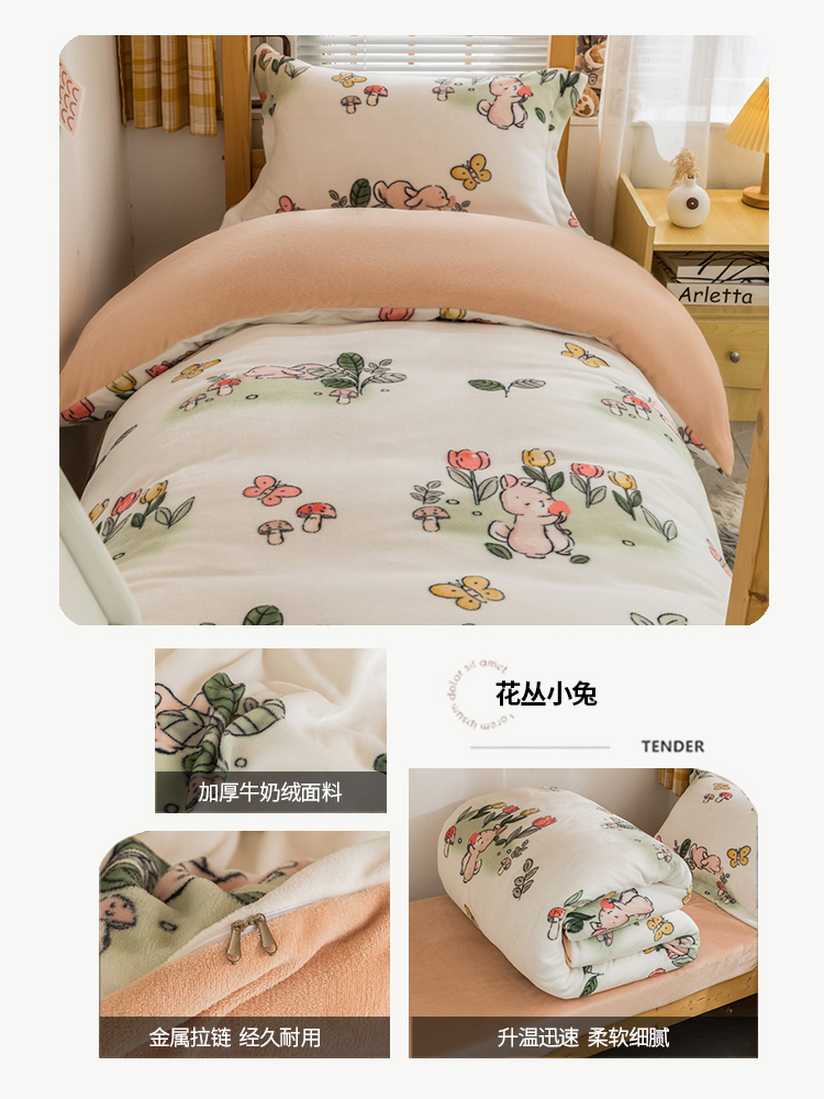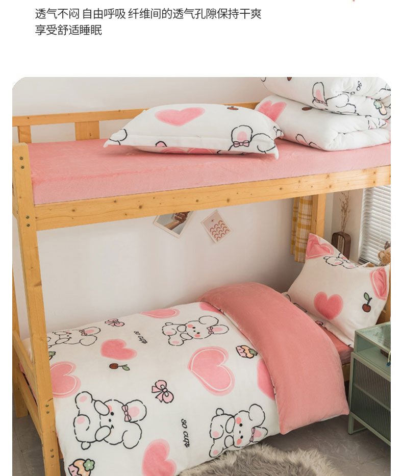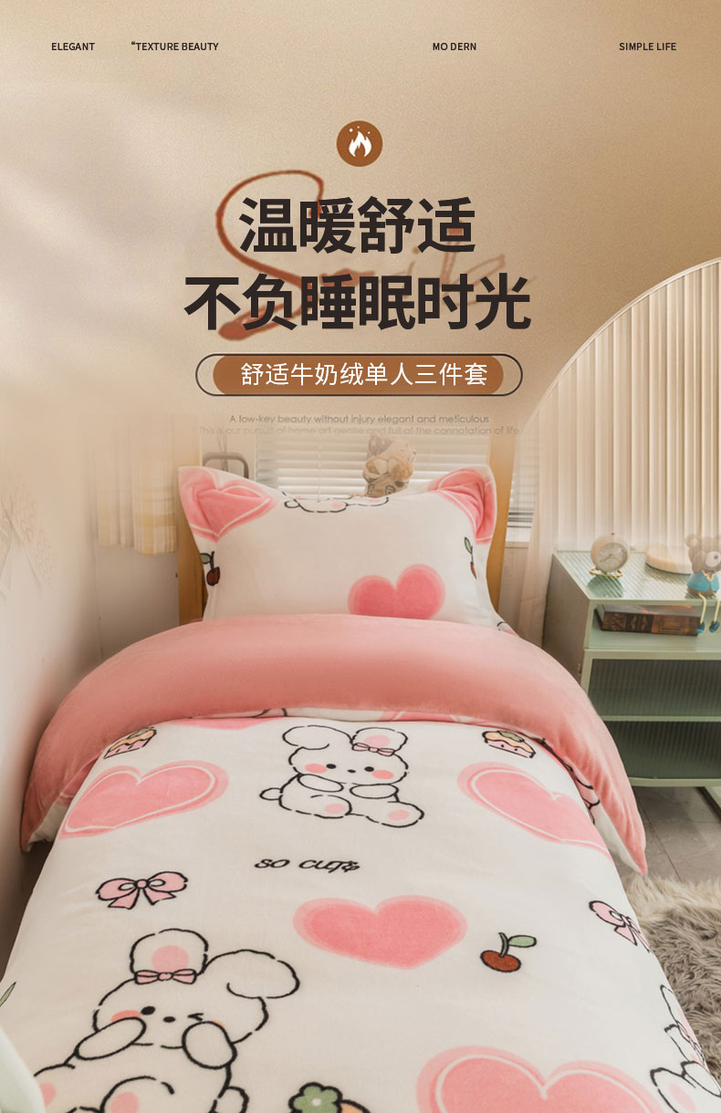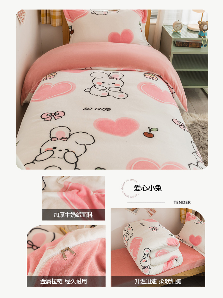 当前位置: 91家纺网 > 商品网购 > 床品套件 > 三件套 > 宅部落 2024新款舒适高克重牛奶绒学生宿舍三件套 爱心小兔