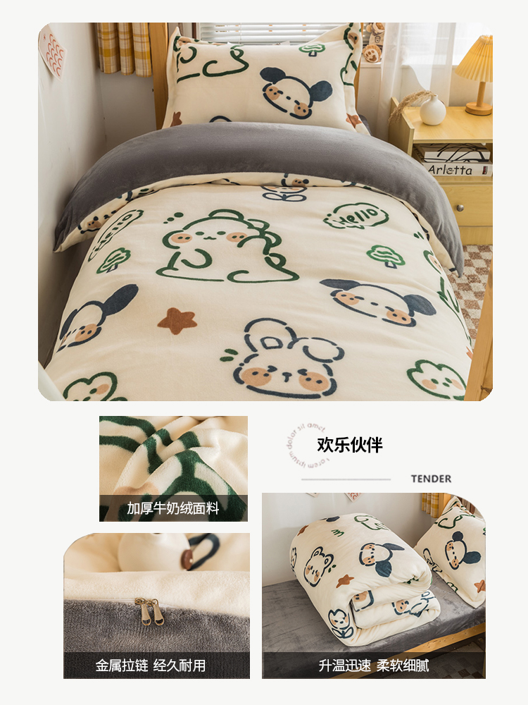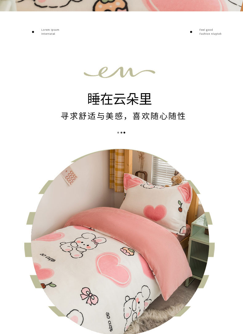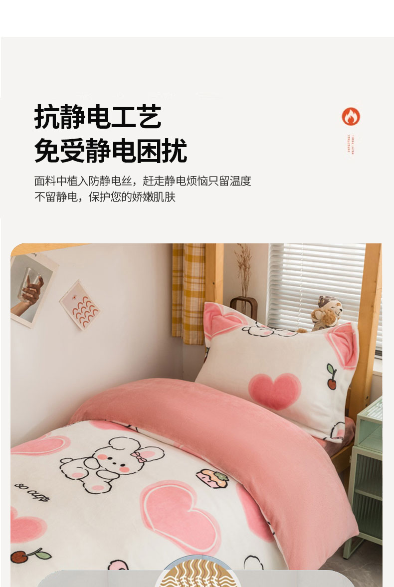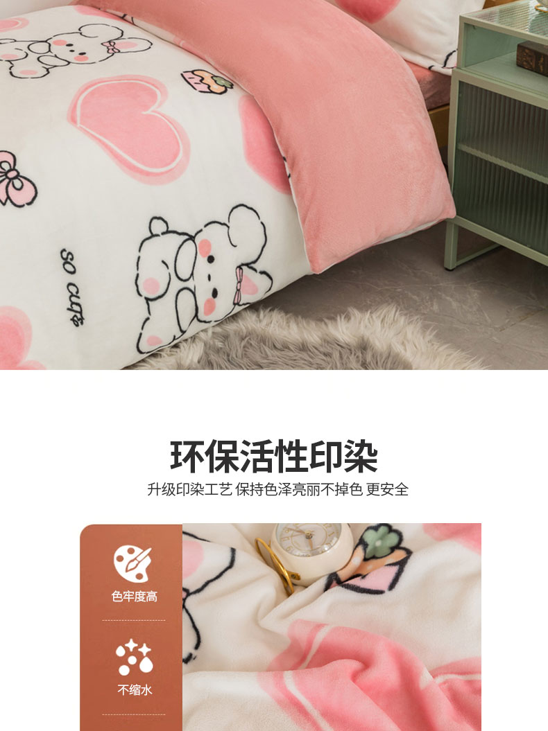 当前位置: 91家纺网 > 商品网购 > 床品套件 > 三件套 > 宅部落 2024新款舒适高克重牛奶绒学生宿舍三件套 爱心小兔