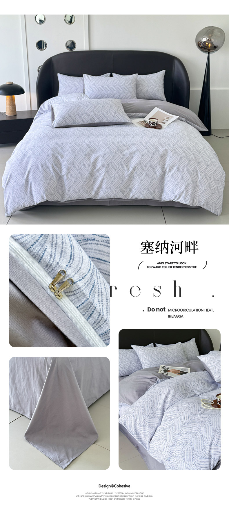 (总)千朵 2025新款全棉纯棉色织提花水洗棉四件套 富士系列,富士果绿,富士灰,富士奶黄,富士浅兰,富士浅紫,富士森绿,富士雾兰