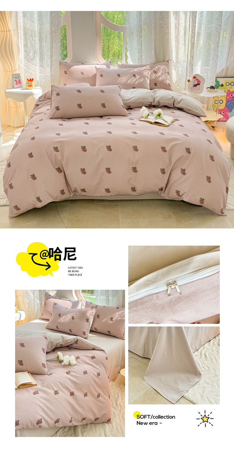 千朵 2024新款全棉磨毛小清新印花四件套 哈尼