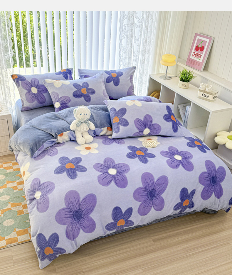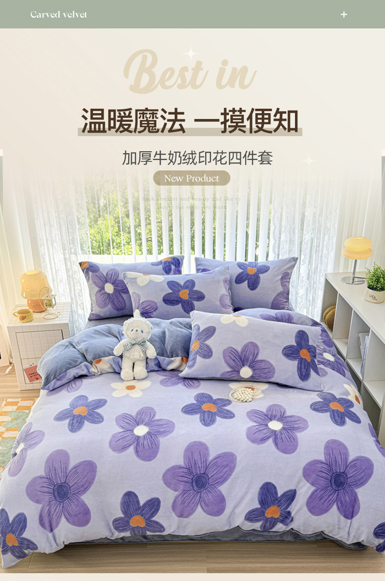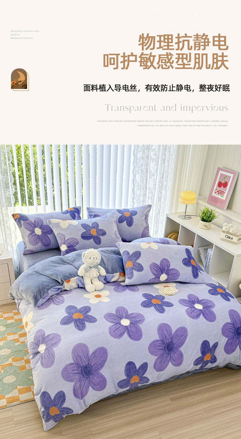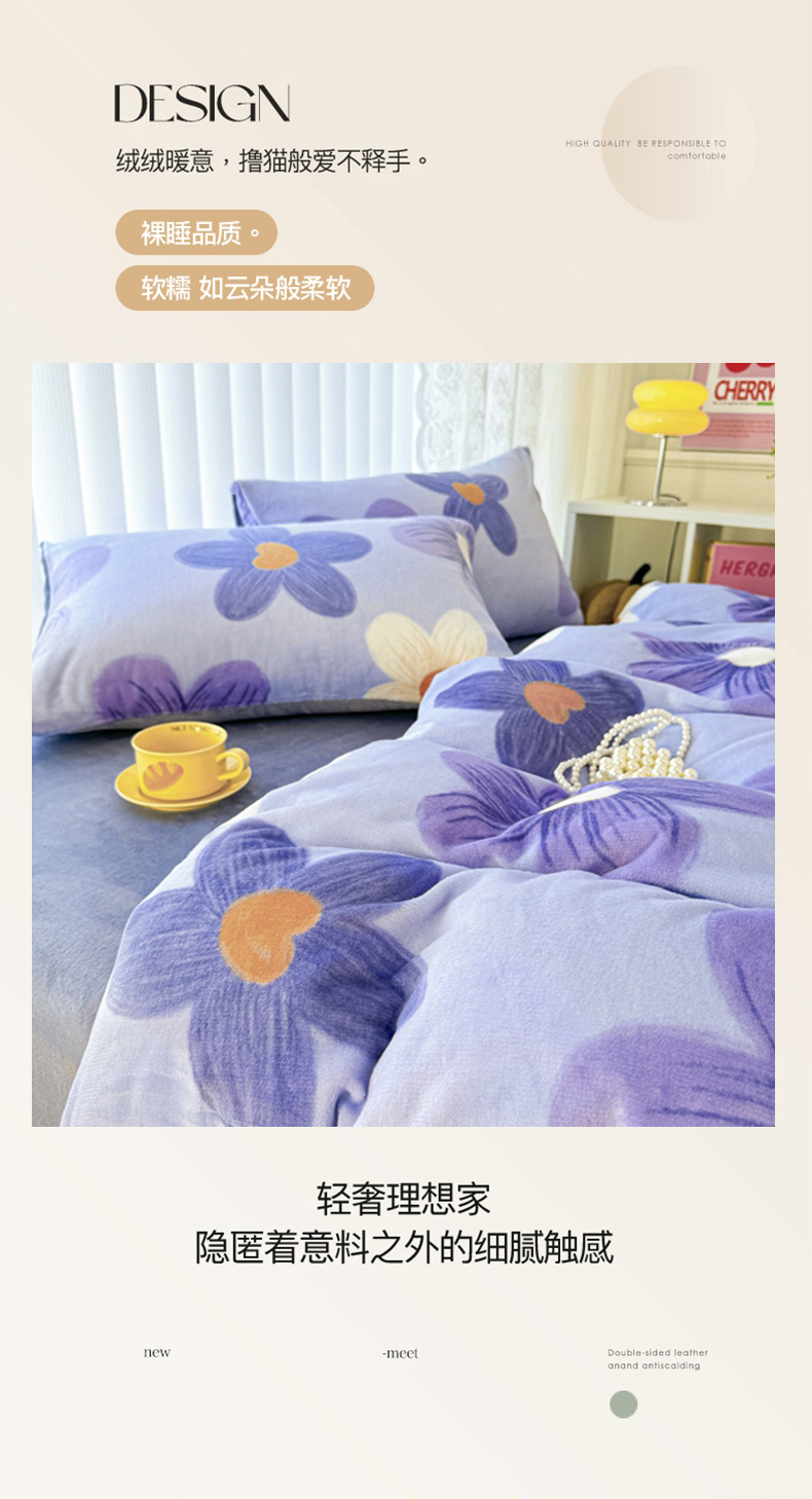 商品名称:觅妮家纺 2025新款全消光200g高克重秋冬加厚印花牛奶绒单被套 浅香-紫