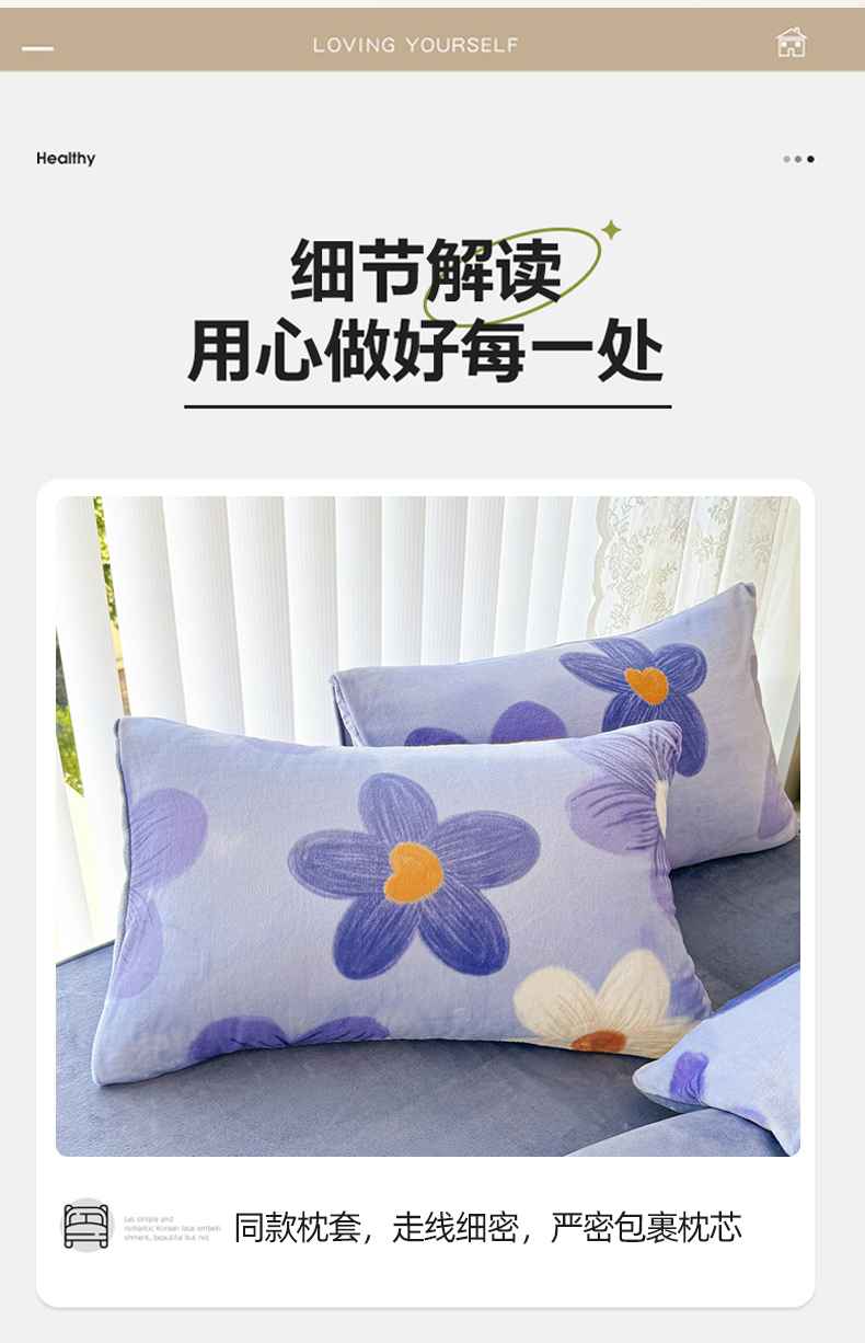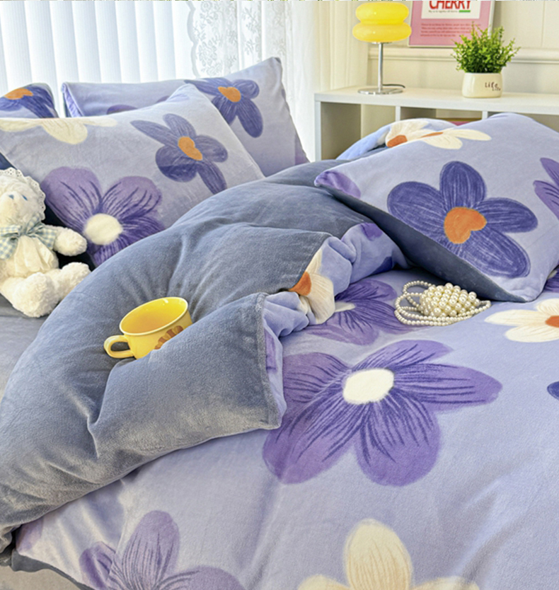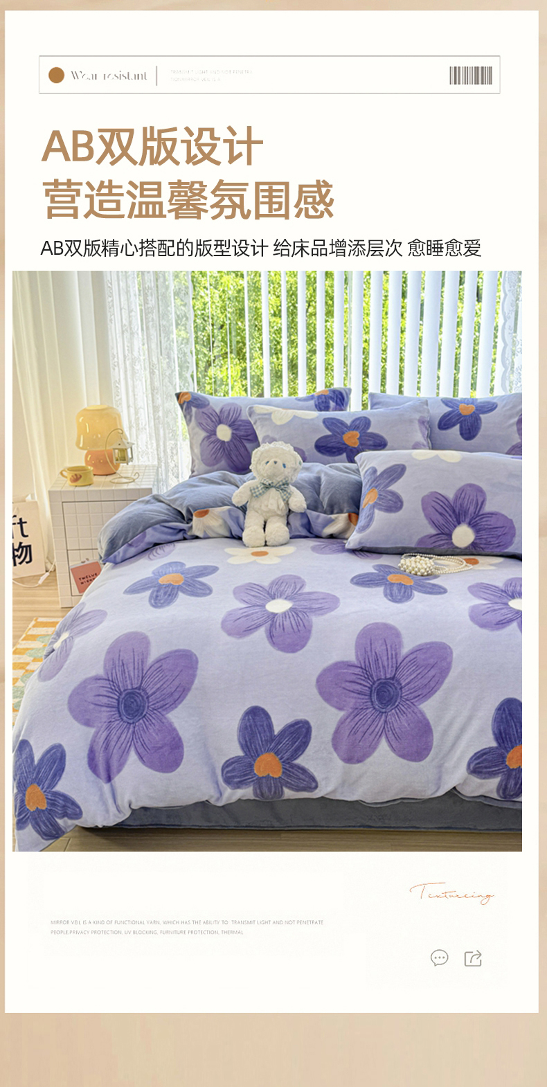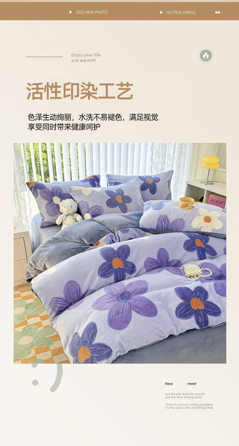 商品名称:觅妮家纺 2025新款全消光200g高克重秋冬加厚印花牛奶绒单被套 浅香-紫