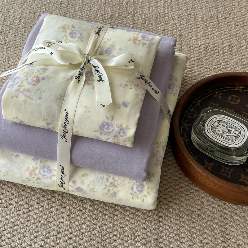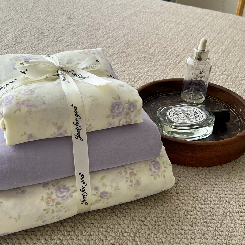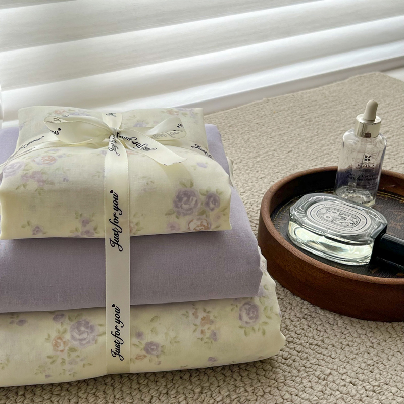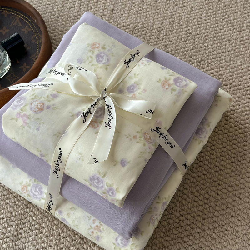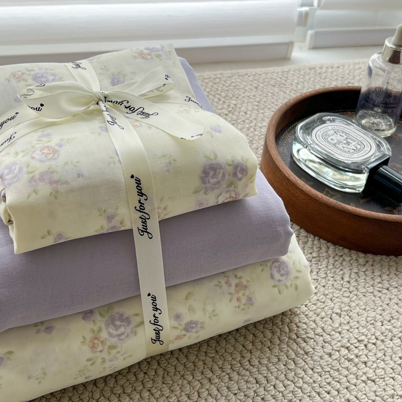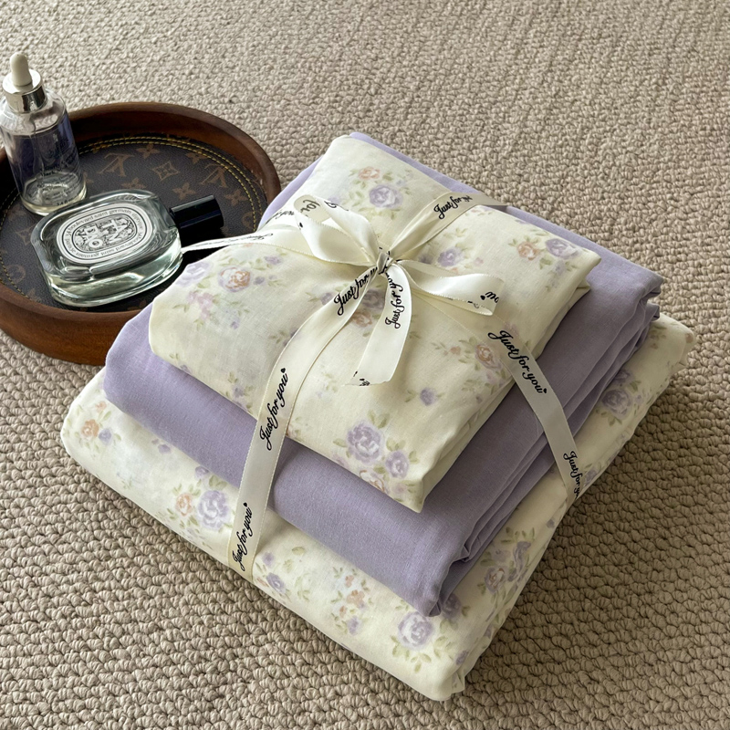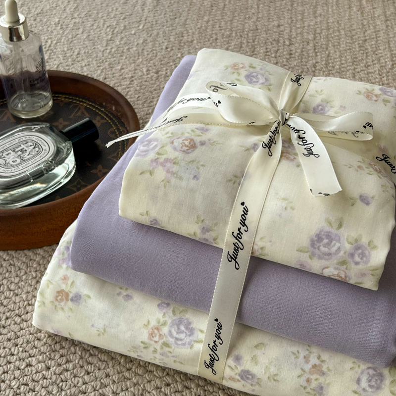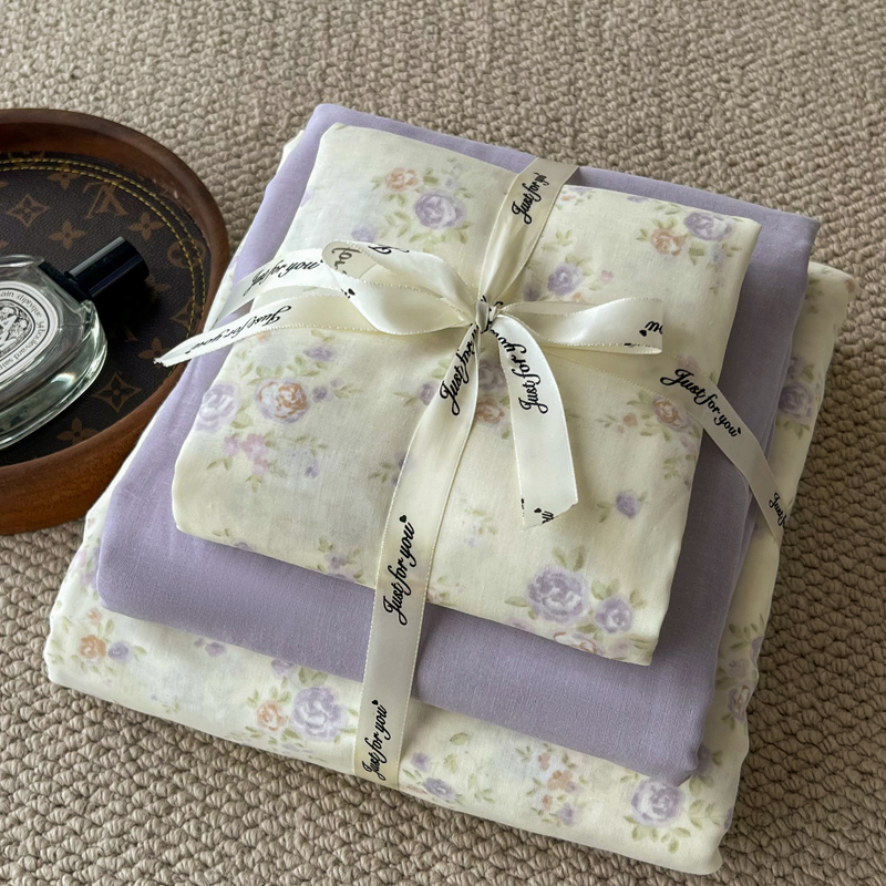商品名称:一比一家纺 2025新款全棉母婴级抗菌有氧全棉双层纱亲肤全棉小清新印花三件套四件套 薄雾玫瑰