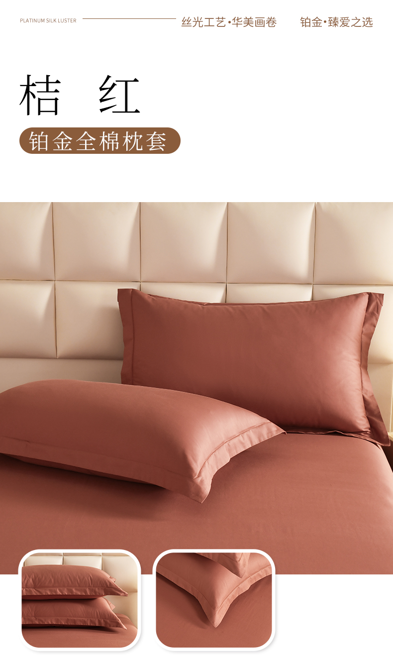 商品名称:元元被芯 2025款纯色全丝光-全精梳高密纺-铂金A类全棉枕套 桔红