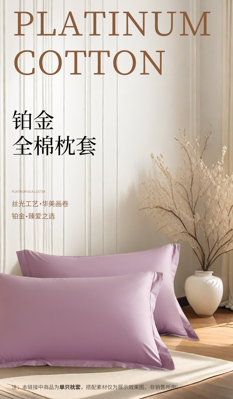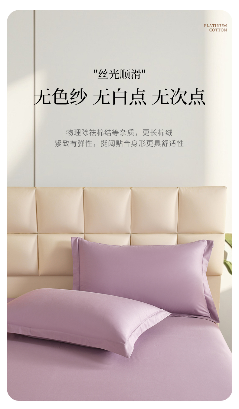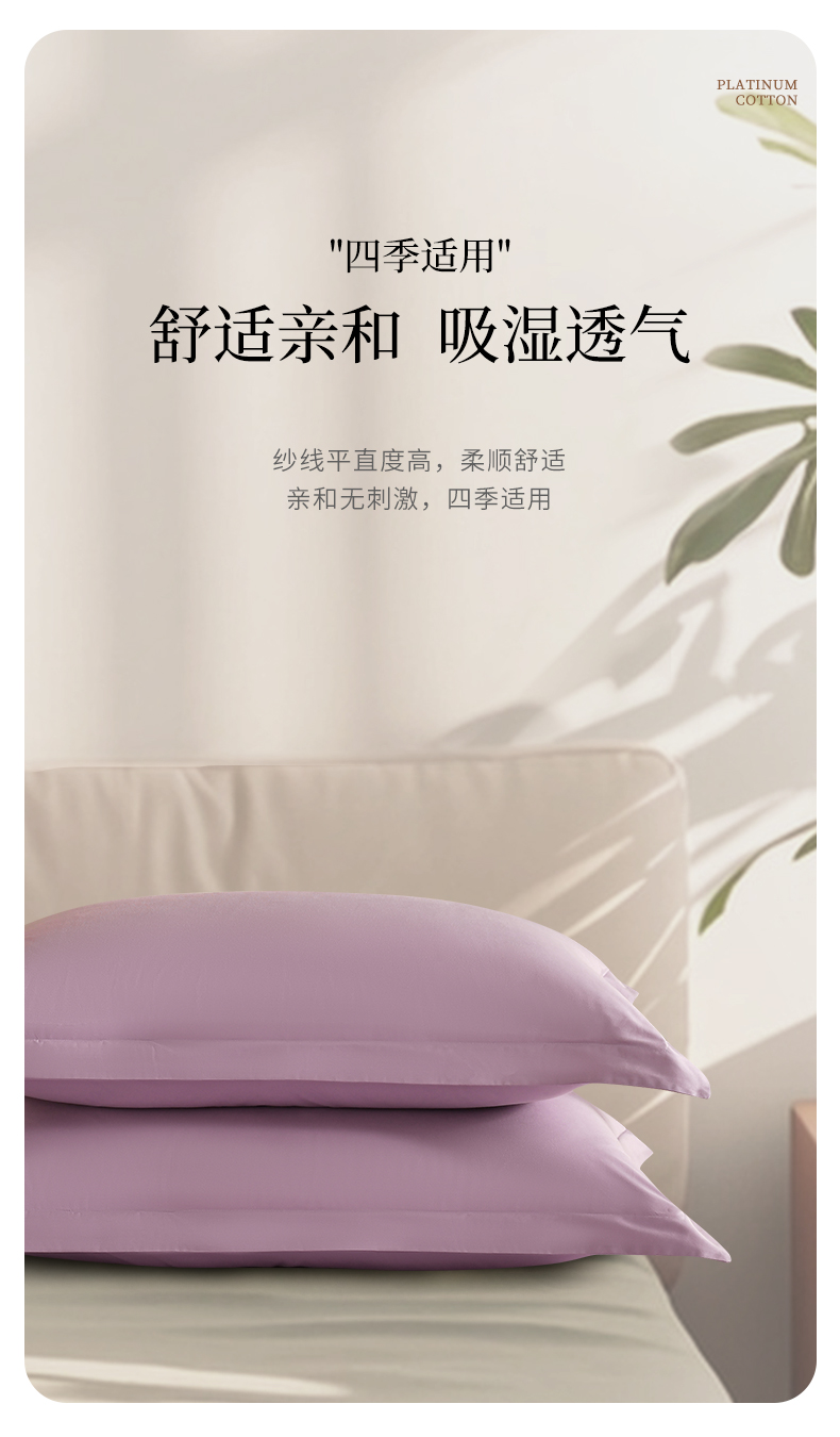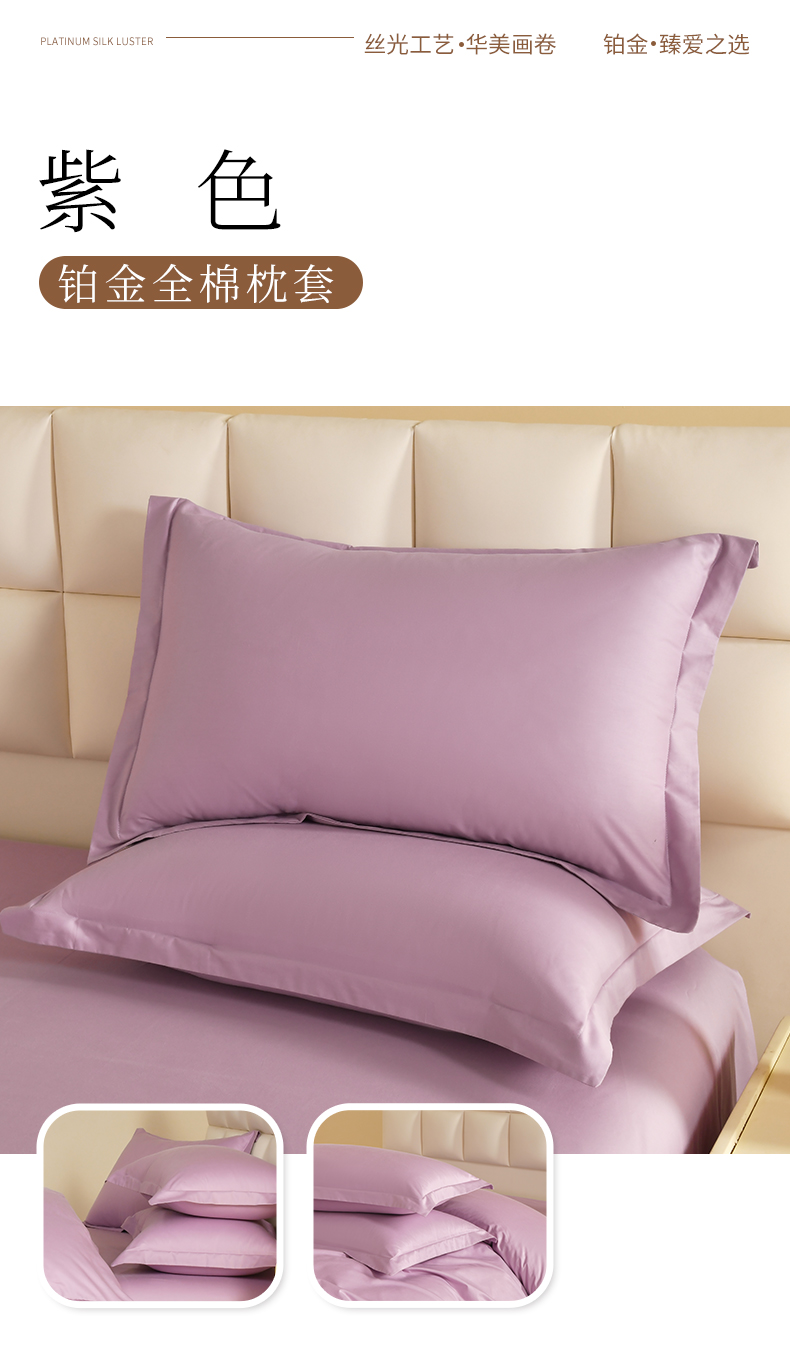 商品名称:元元被芯 2025款纯色全丝光-全精梳高密纺-铂金A类全棉枕套 紫色