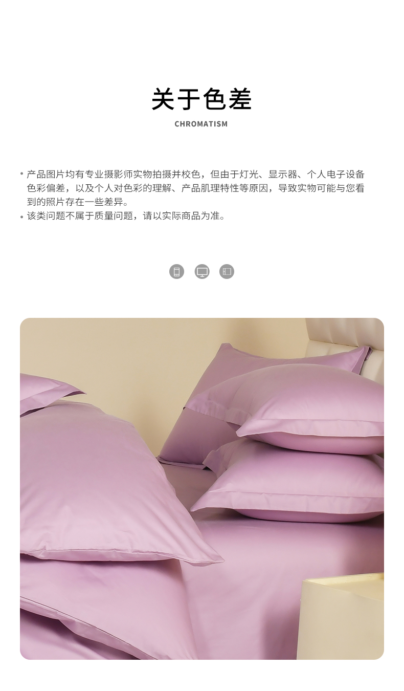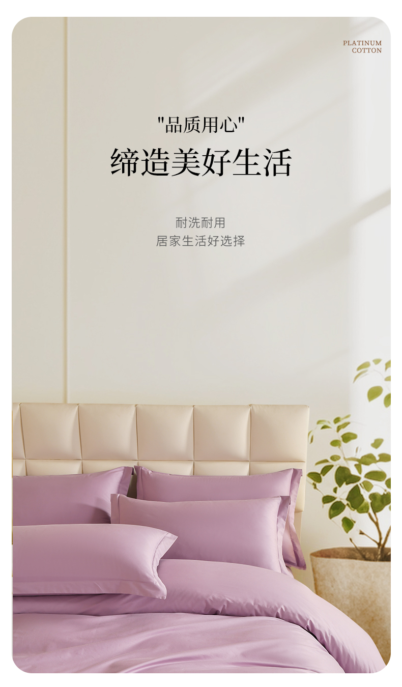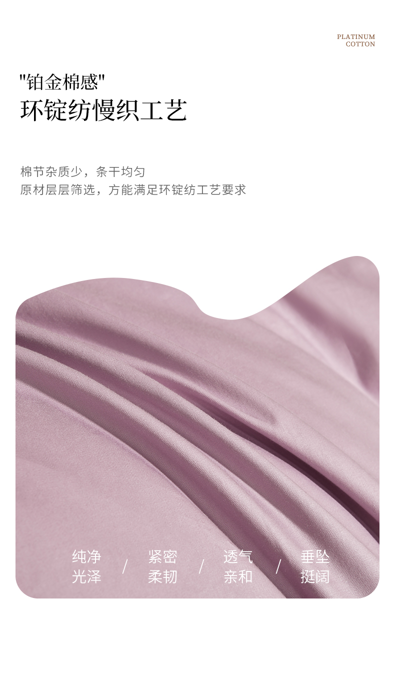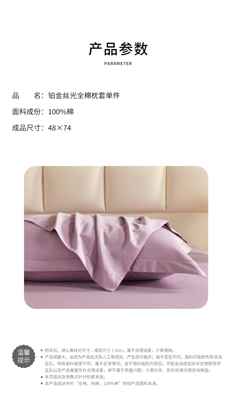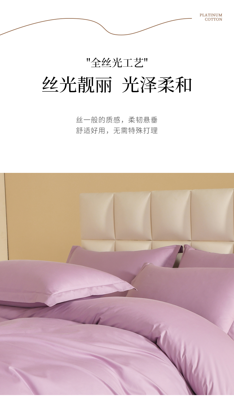 商品名称:元元被芯 2025款纯色全丝光-全精梳高密纺-铂金A类全棉枕套 紫色