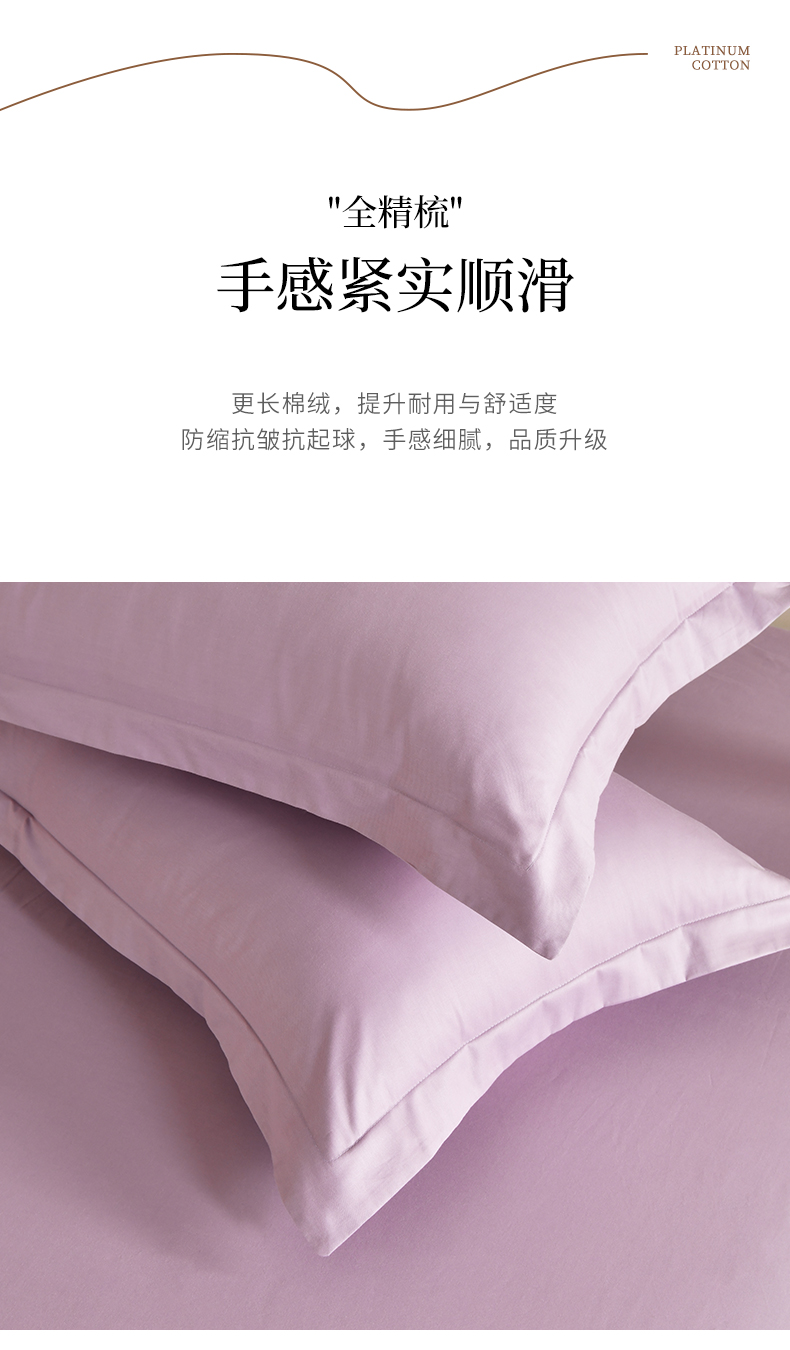 元元被芯 2025款纯色全丝光-全精梳高密纺-铂金A类全棉枕套 紫色
