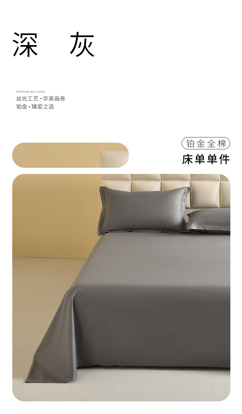 商品名称:元元被芯 2025款纯色全丝光-全精梳高密纺-铂金A类全棉单床单 深灰