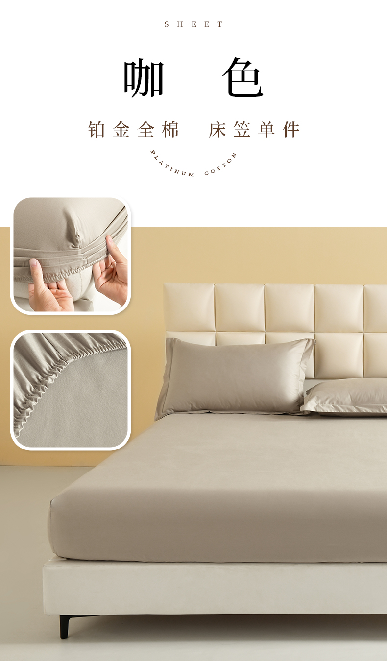 • 91家纺网 家纺一手货源 找家纺 元元被芯 2025款纯色全丝光-全精梳高密纺-铂金A类全棉单床笠 咖色
