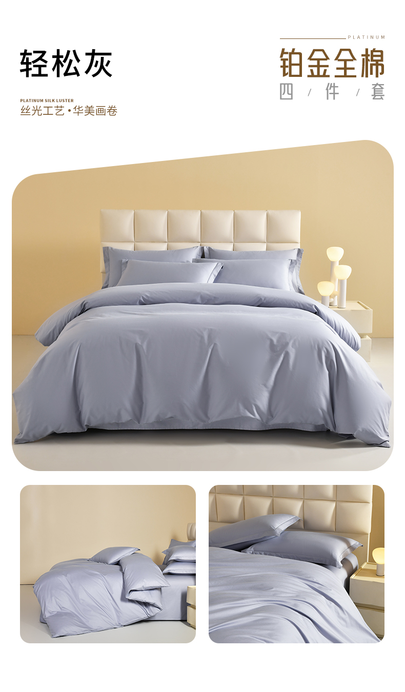 当前位置: 91家纺网 > 商品网购 > 床品套件 > 四件套 > 全棉活性四件套 > 元元被芯 2025款纯色全丝光-全精梳高密纺-铂金A类全棉四件套 轻松灰