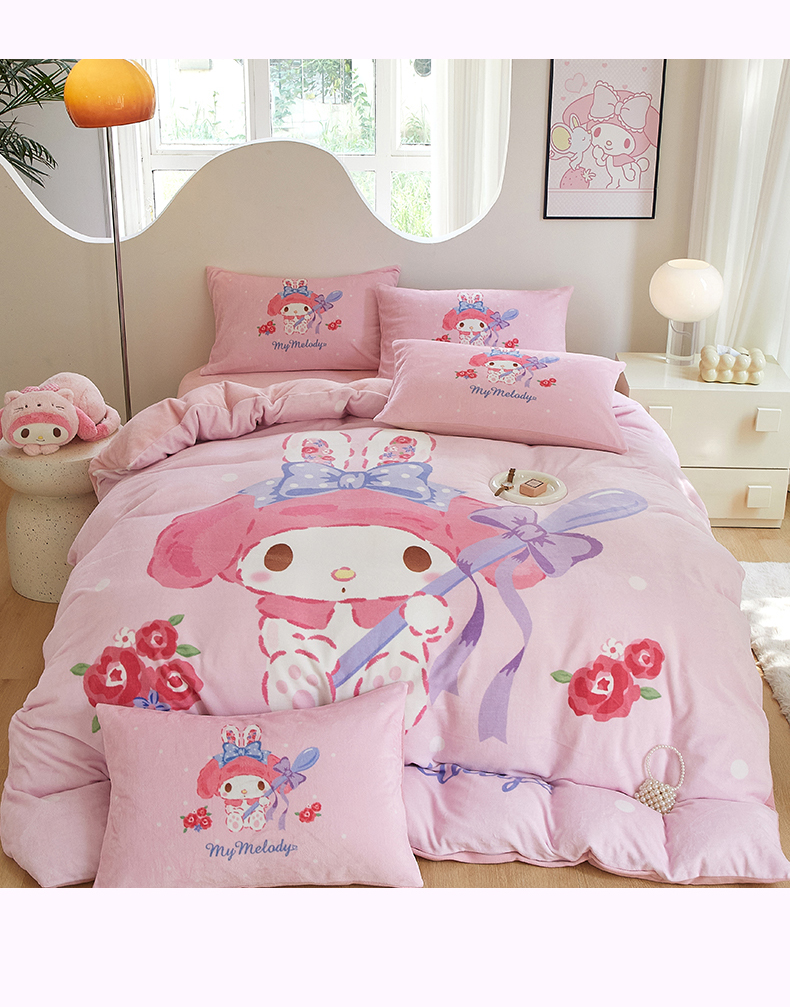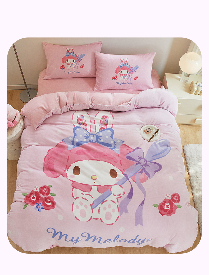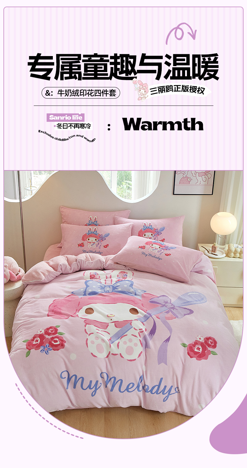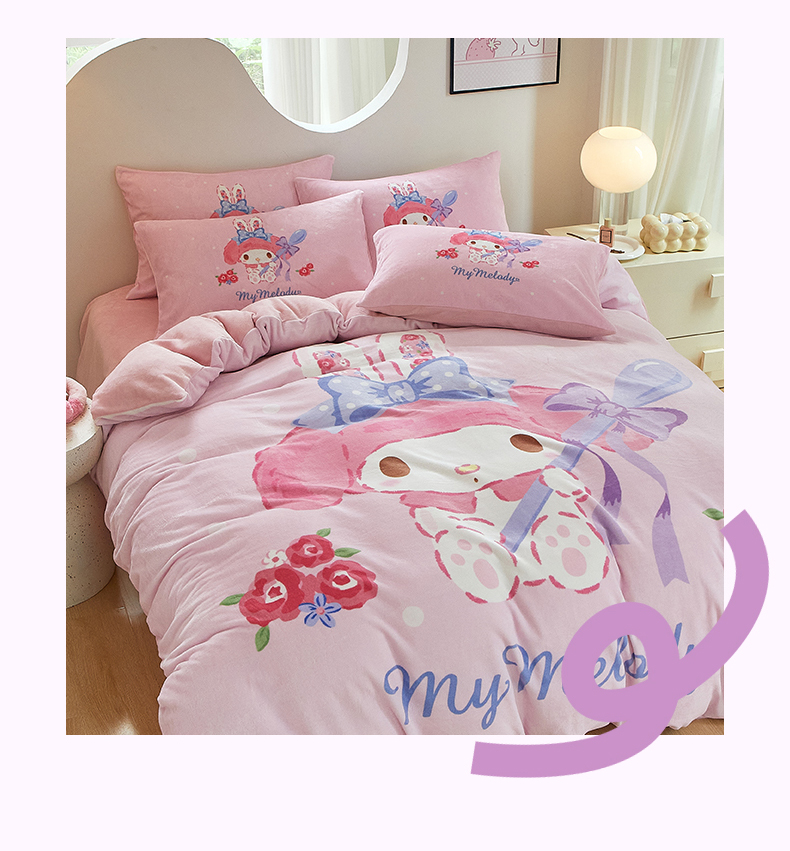 当前位置: 91家纺网 > 商品网购 > 床品套件 > 四件套 > 牛奶绒四件套 > 蘭菲家纺 2024新款牛奶绒卡通三丽鸥四件套 呆萌