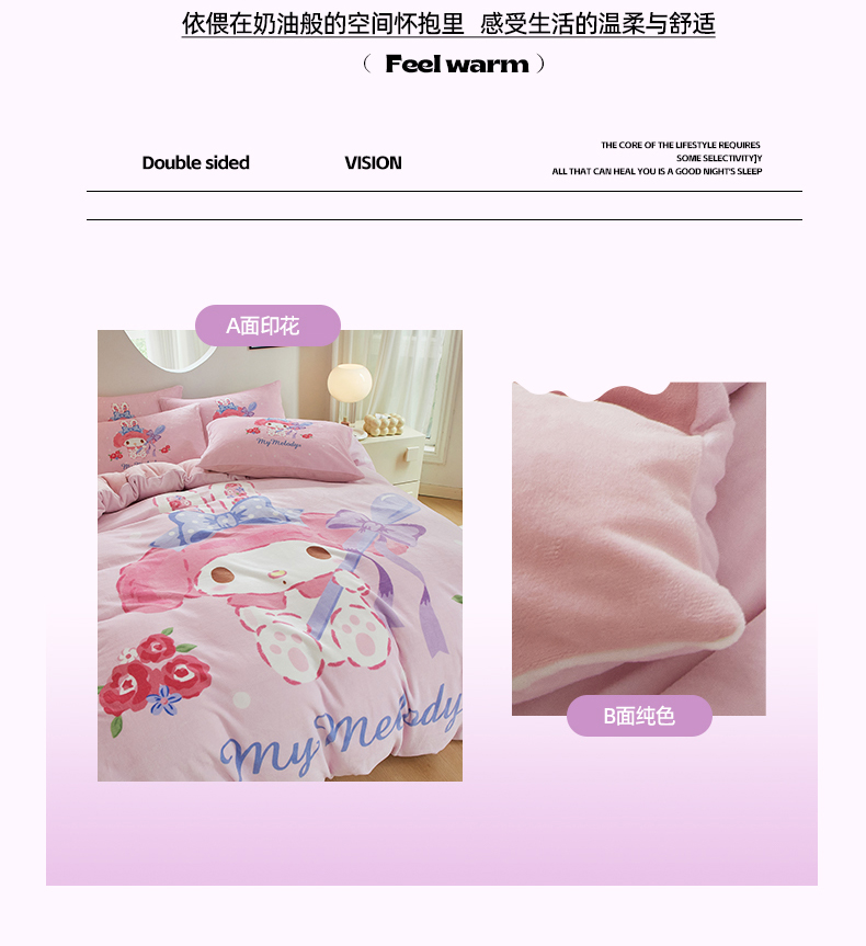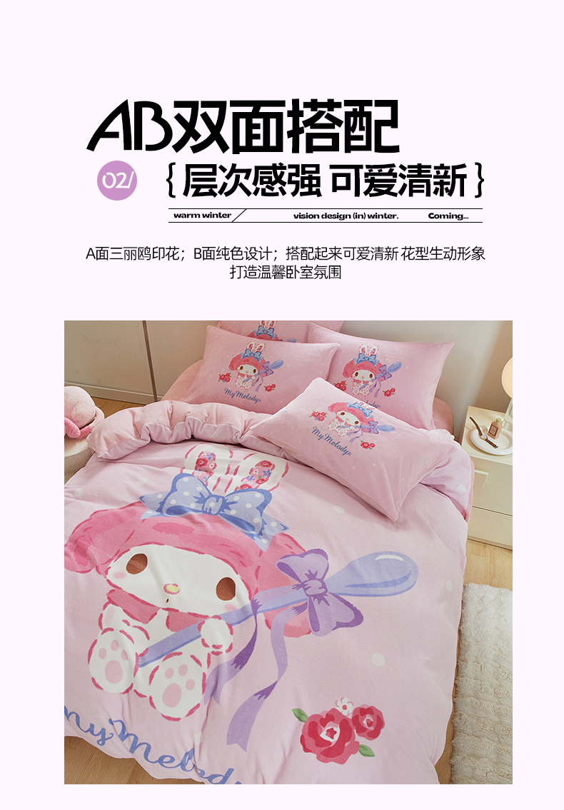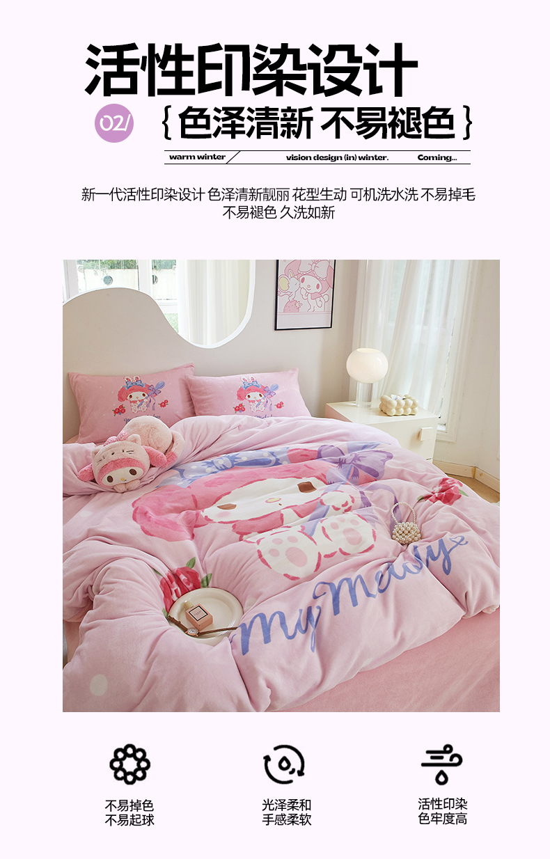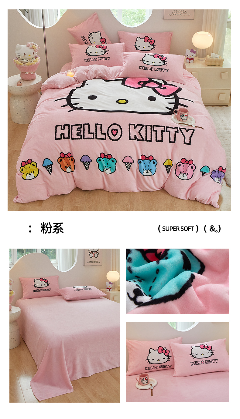 当前位置: 91家纺网 > 商品网购 > 床品套件 > 四件套 > 牛奶绒四件套 > 蘭菲家纺 2024新款牛奶绒卡通三丽鸥四件套 呆萌