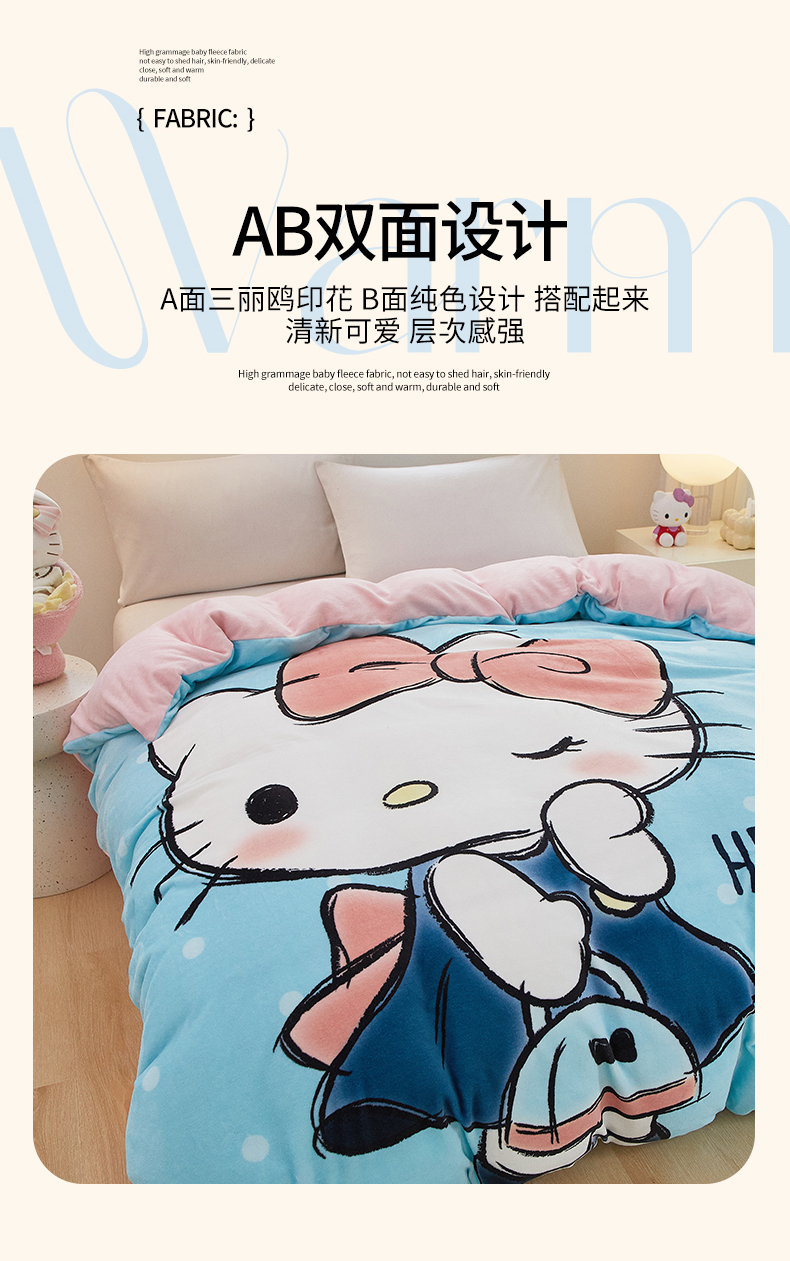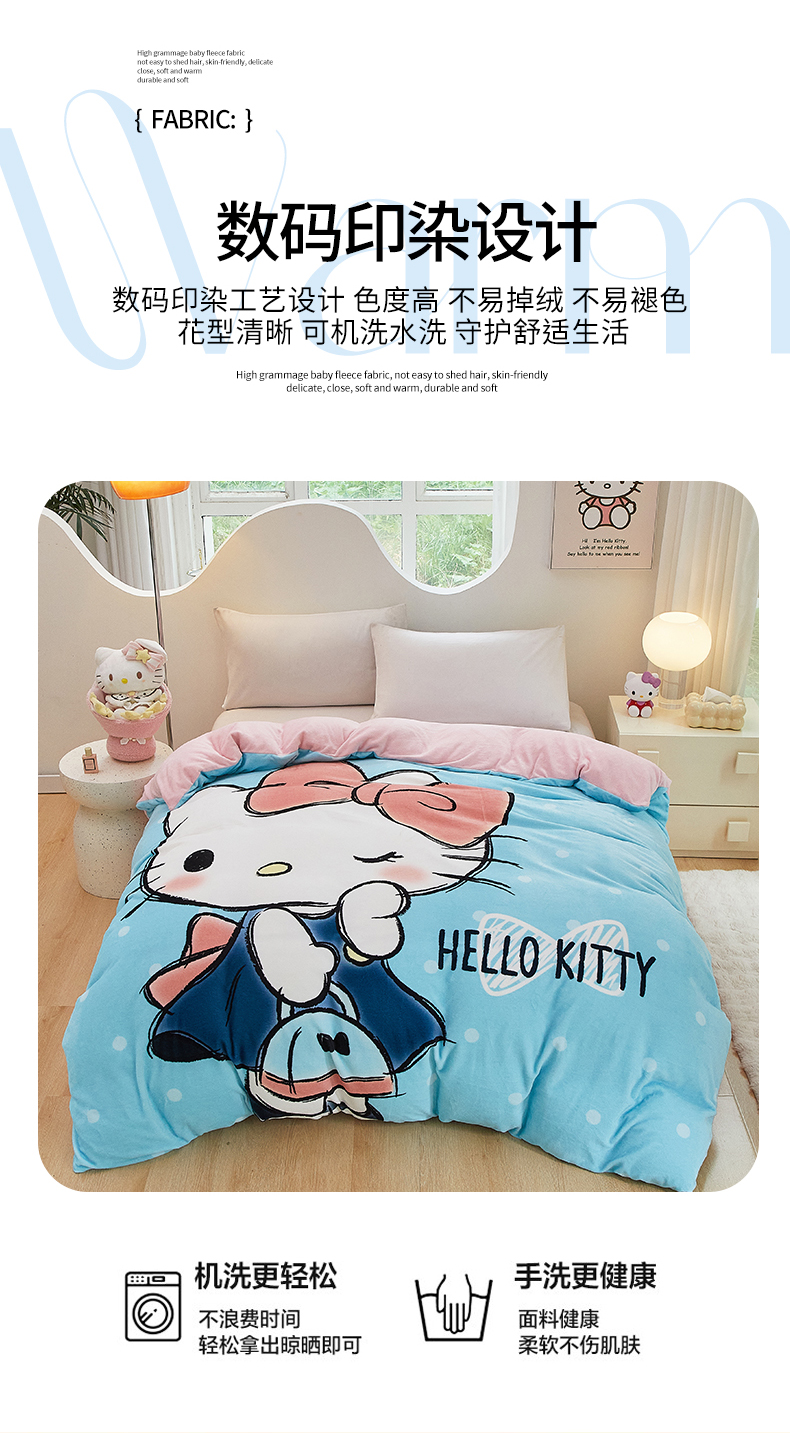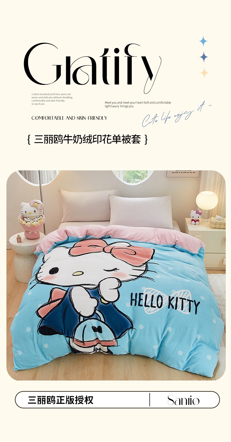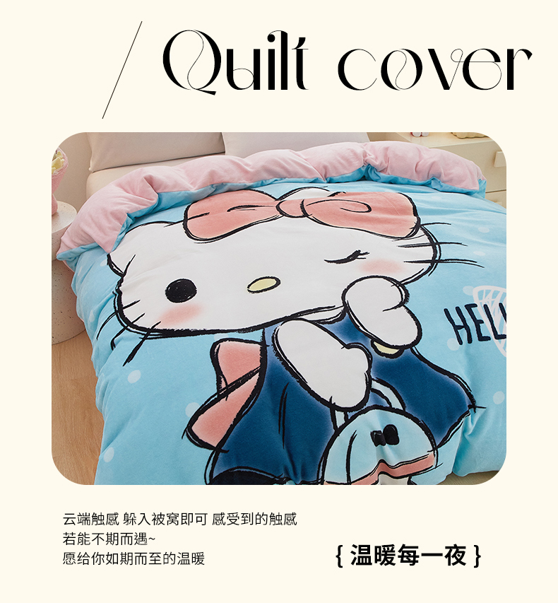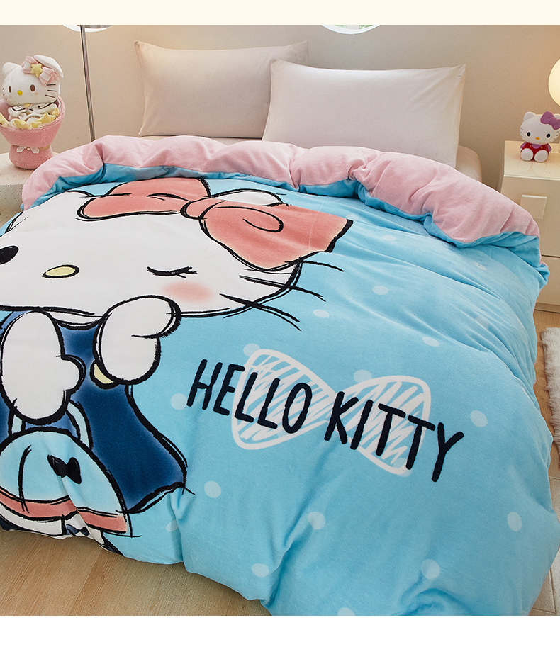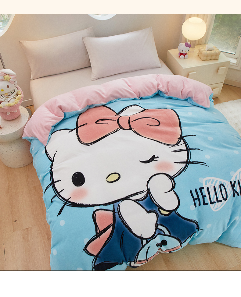商品名称:蘭菲家纺 2024新款牛奶绒卡通三丽鸥单品被套 摩卡蓝