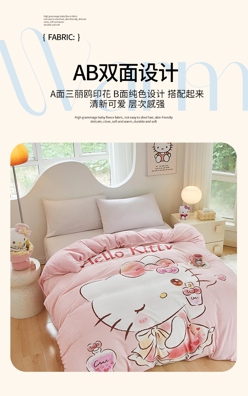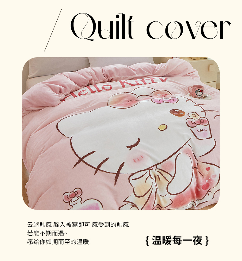 商品名称:蘭菲家纺 2024新款牛奶绒卡通三丽鸥单品被套 向往