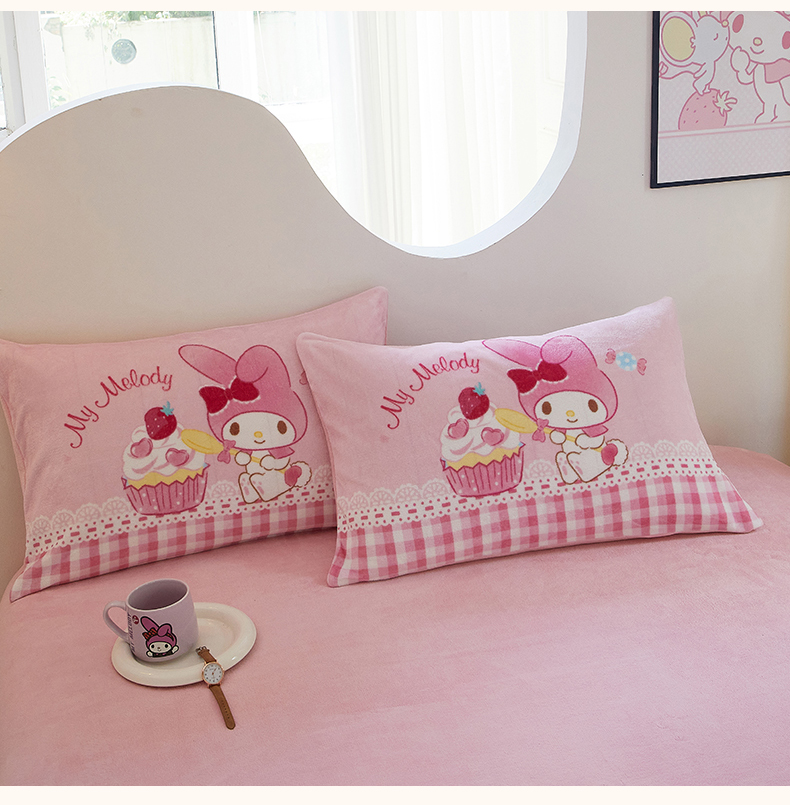 蘭菲家纺 2024新款牛奶绒卡通三丽鸥单品枕套 生日快乐