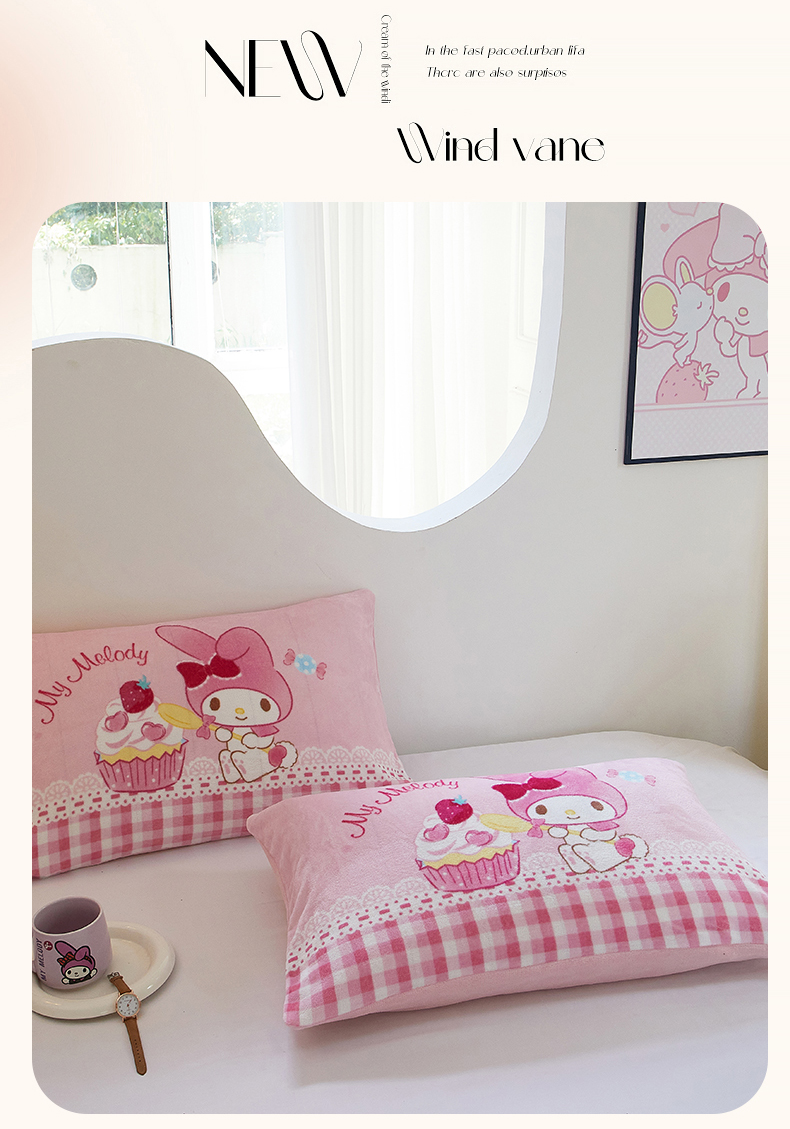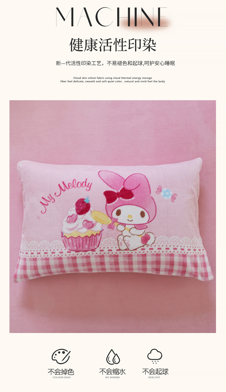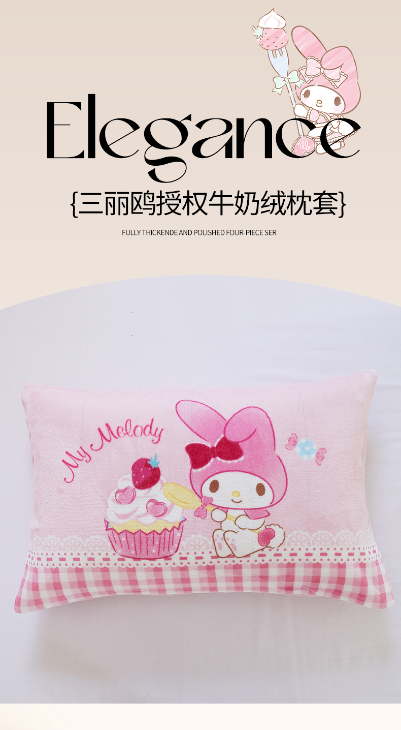 商品名称:蘭菲家纺 2024新款牛奶绒卡通三丽鸥单品枕套 生日快乐