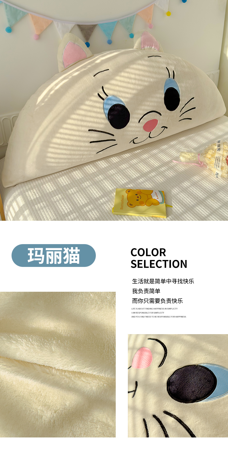 商品名称:乐坊 2024新款牛奶绒绣花贴布绣床头大靠背 白猫
