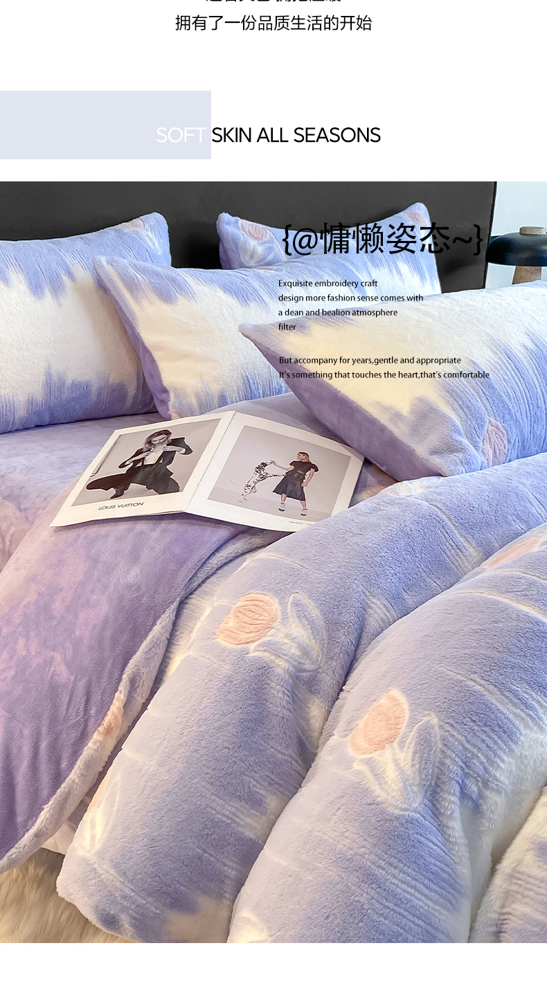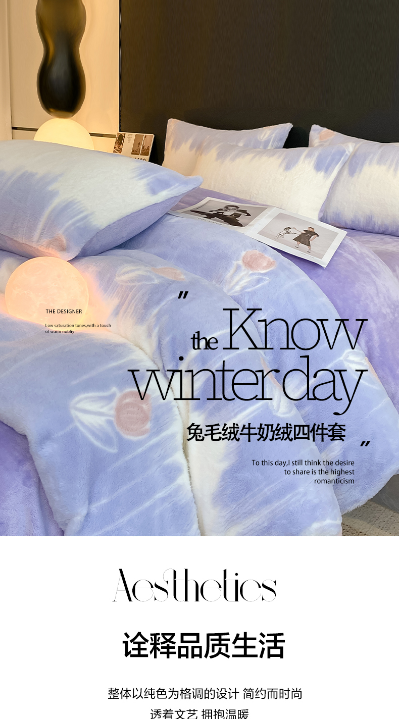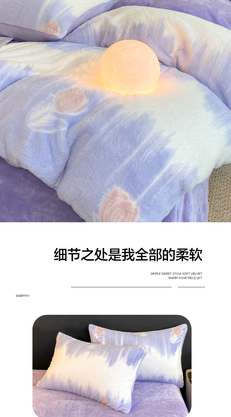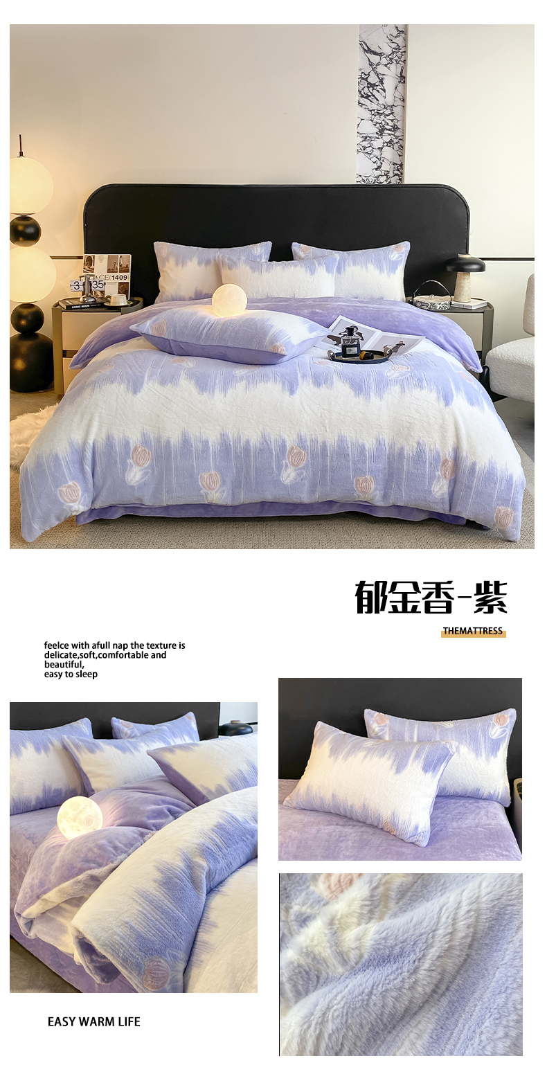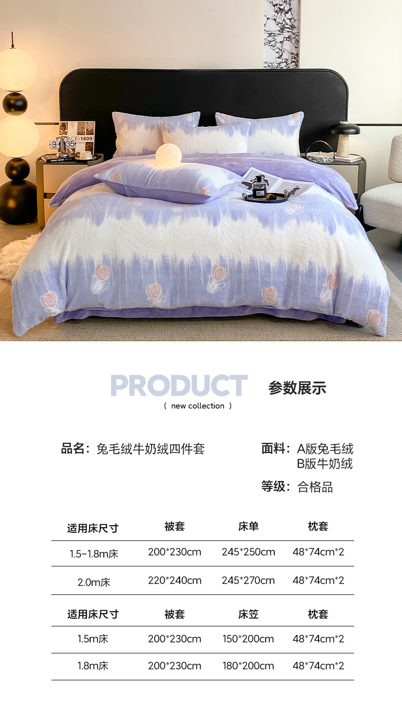 商品名称:富之航家纺 2024新款剪花兔兔绒四件套 郁金香-紫