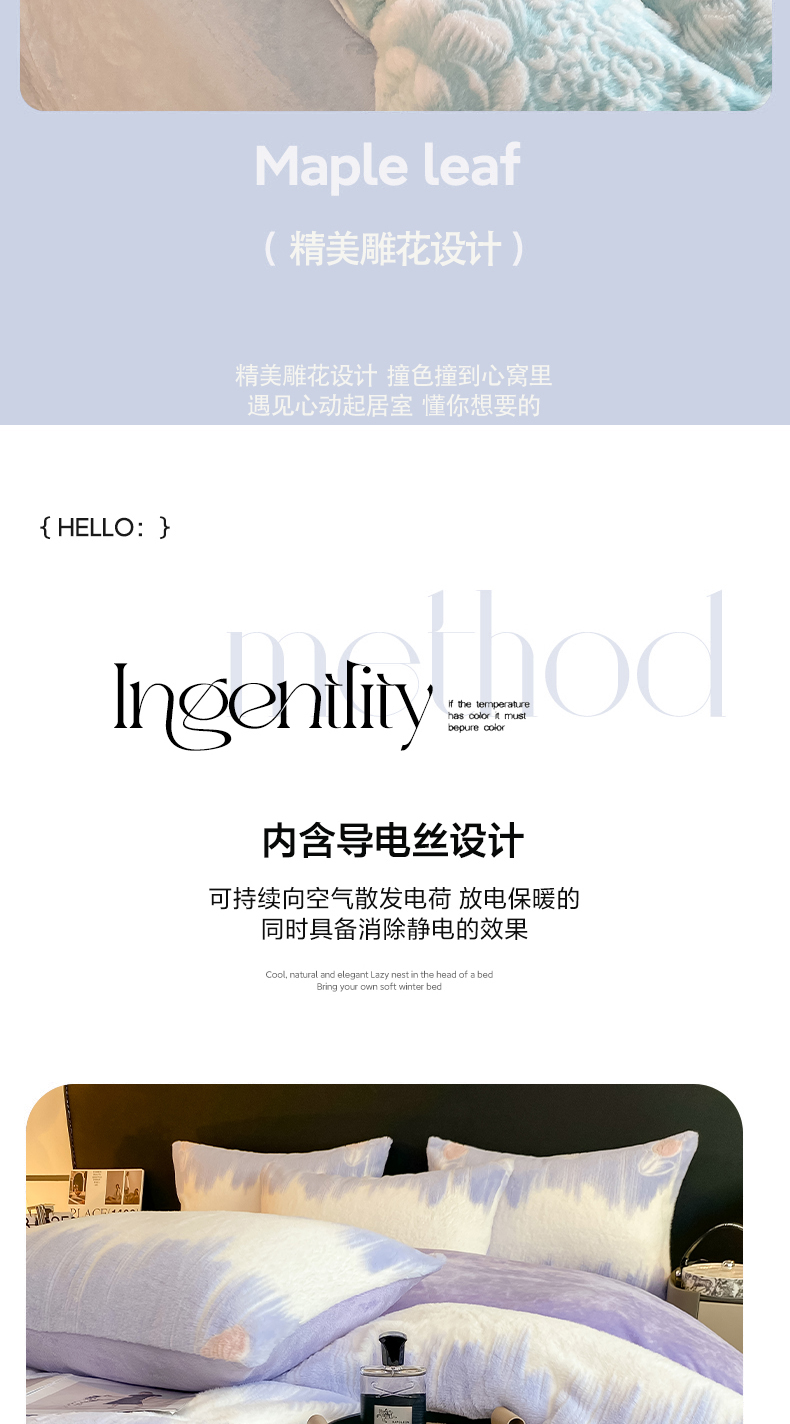 富之航家纺 2024新款剪花兔兔绒四件套 郁金香-紫