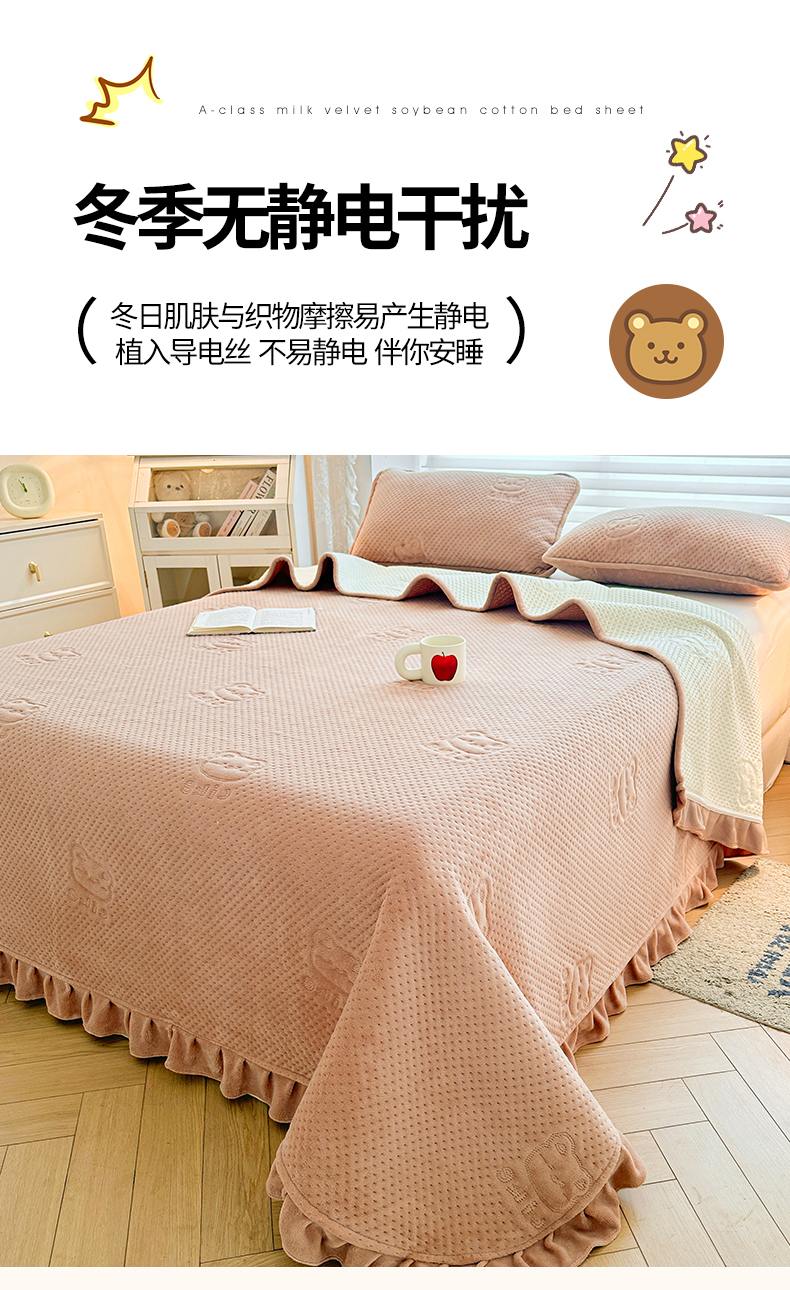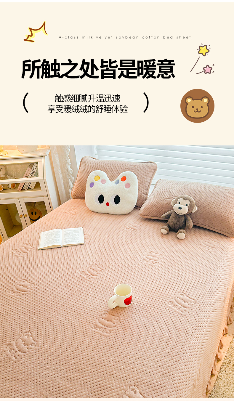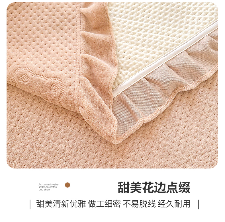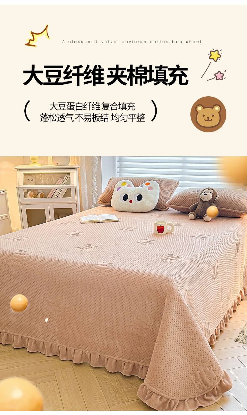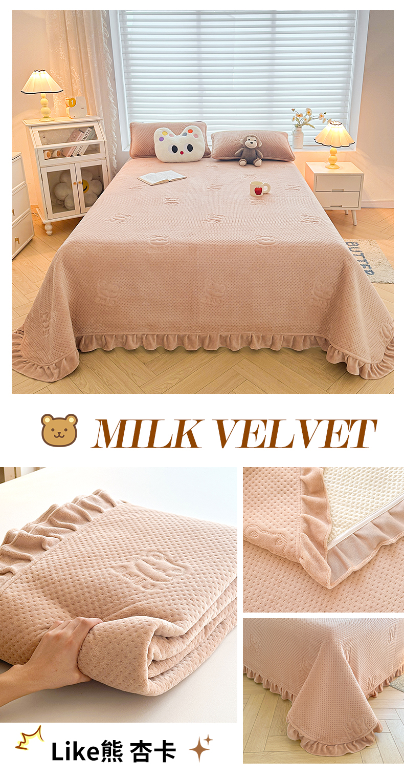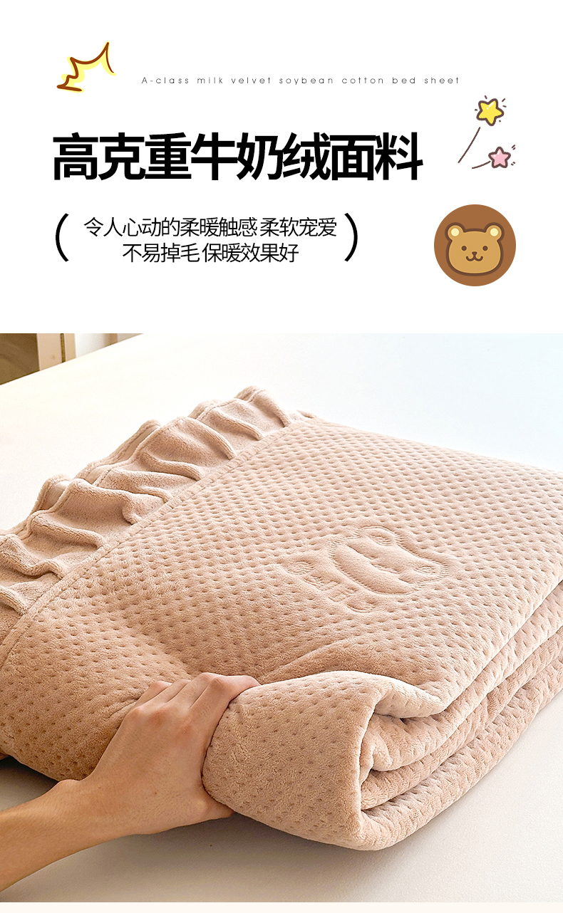 商品名称:居眠 2024新款A类牛奶绒like小熊系列大豆夹棉床单 Like熊 杏卡