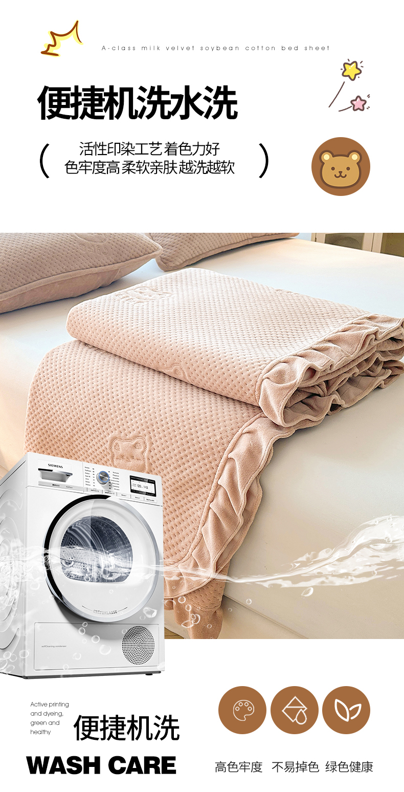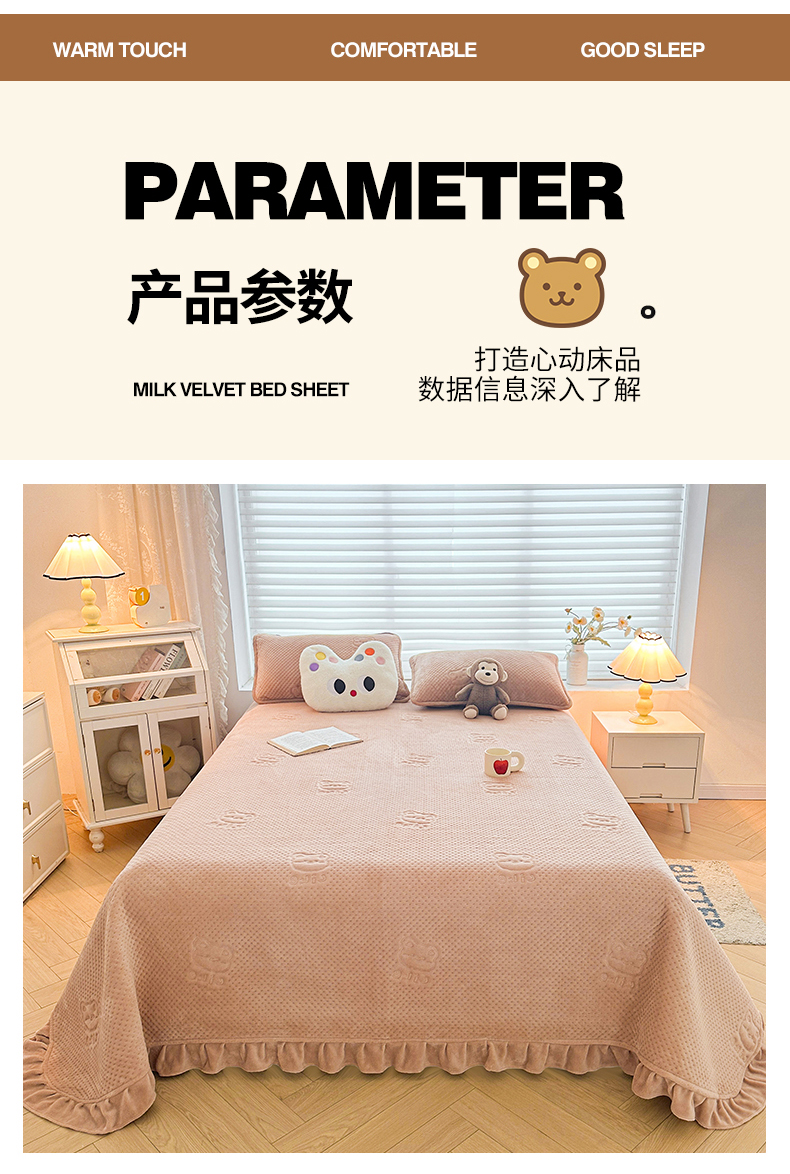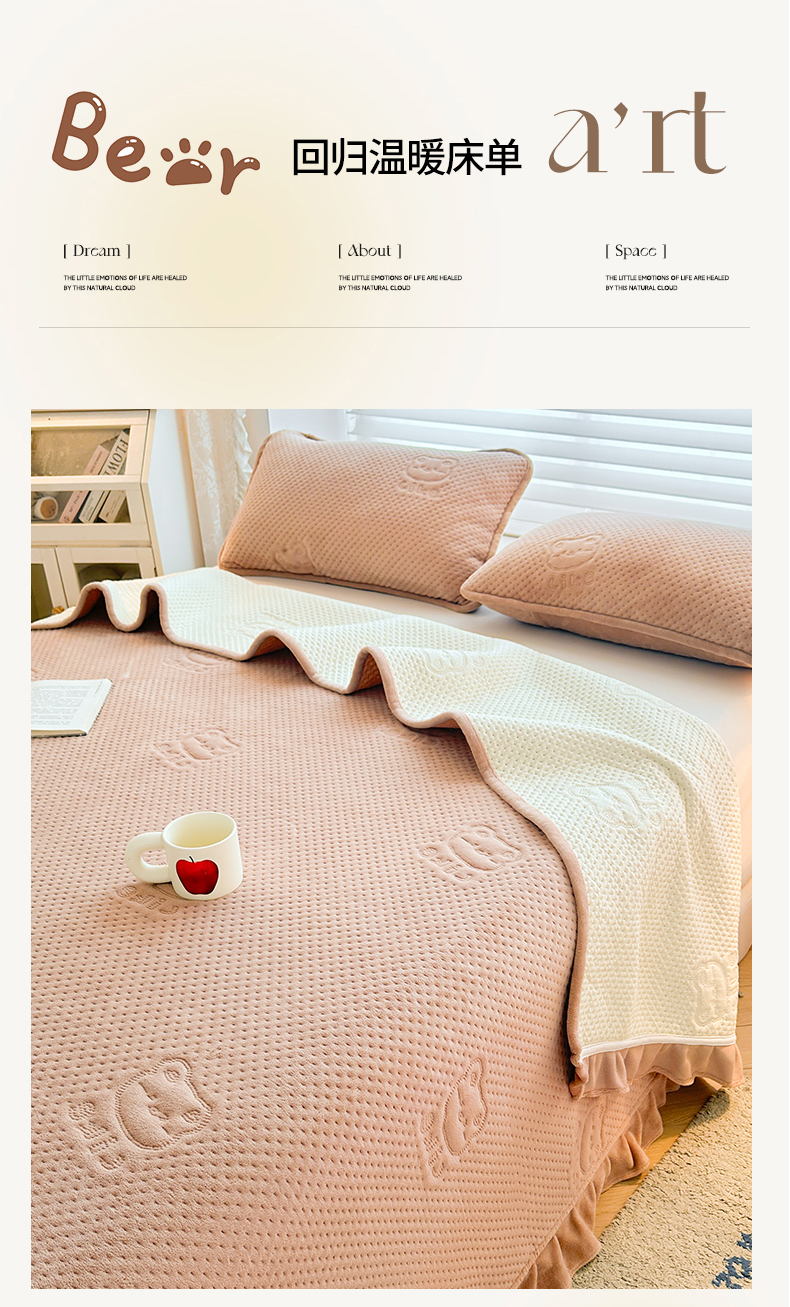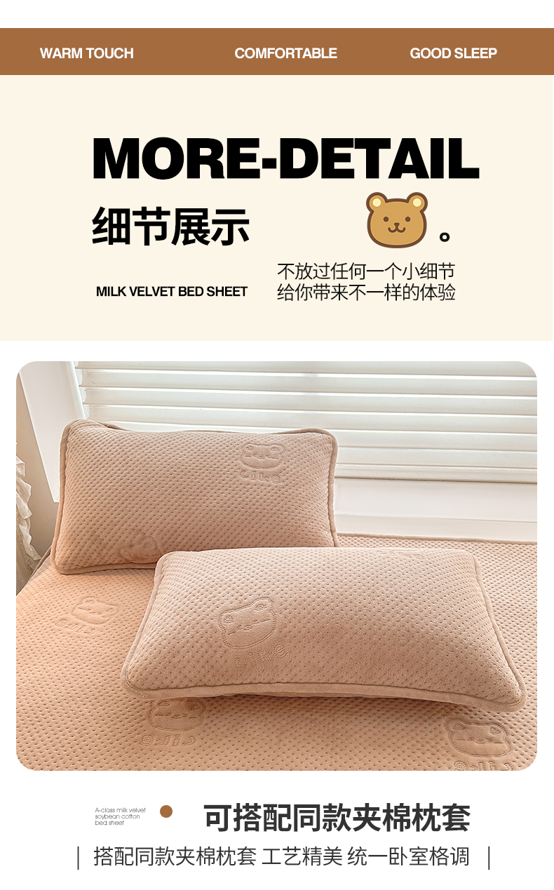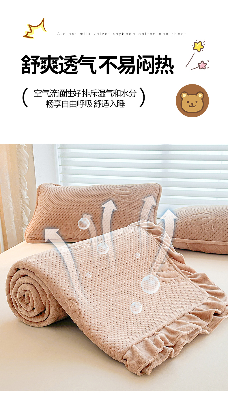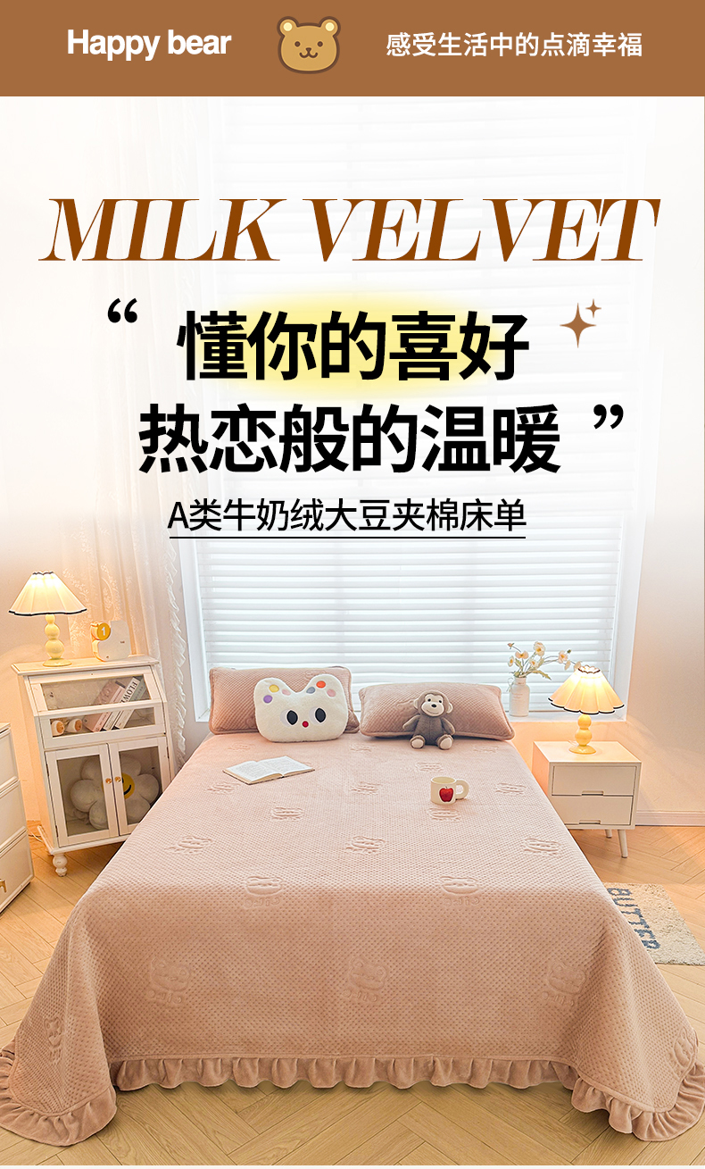 商品名称:居眠 2024新款A类牛奶绒like小熊系列大豆夹棉床单 Like熊 杏卡