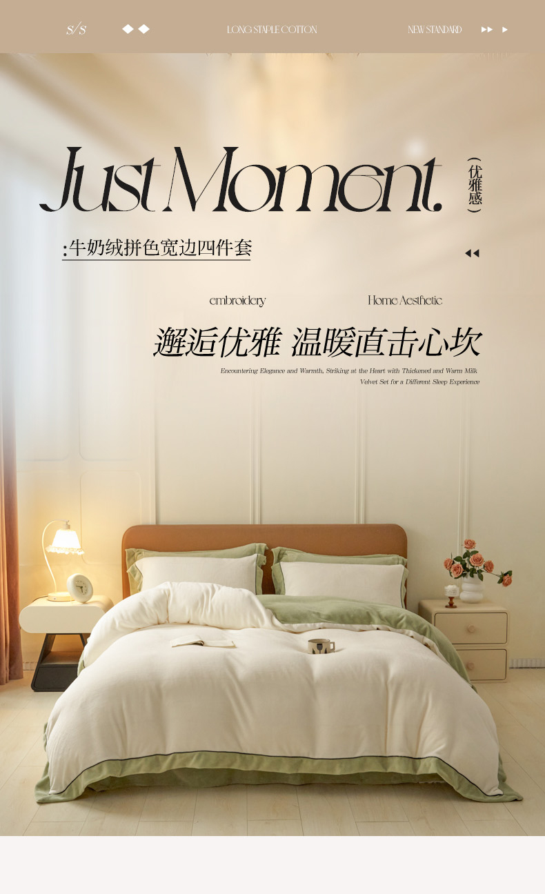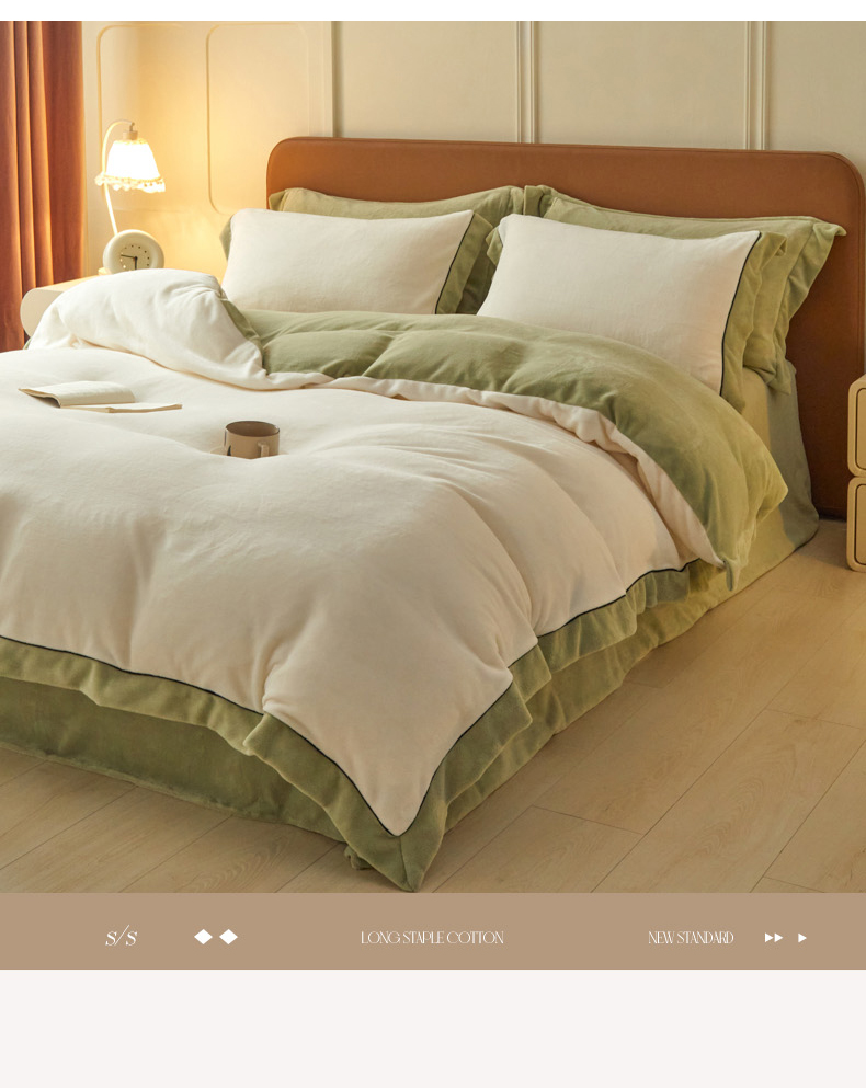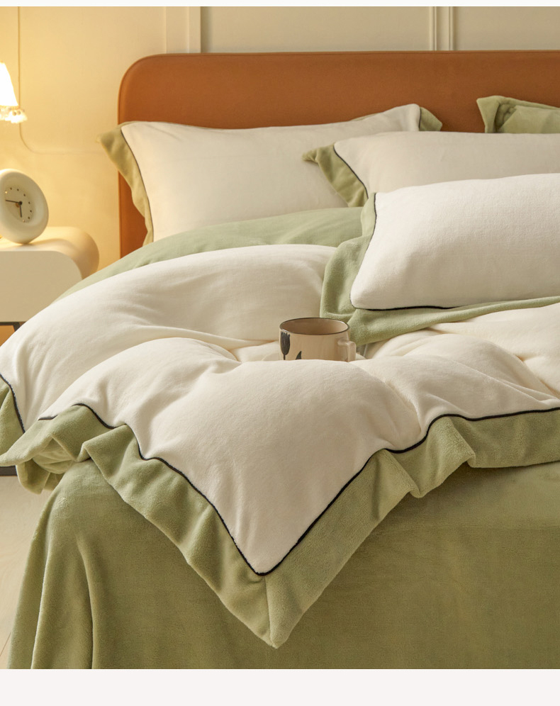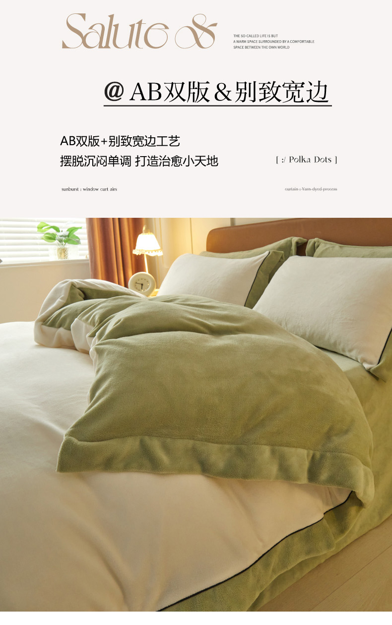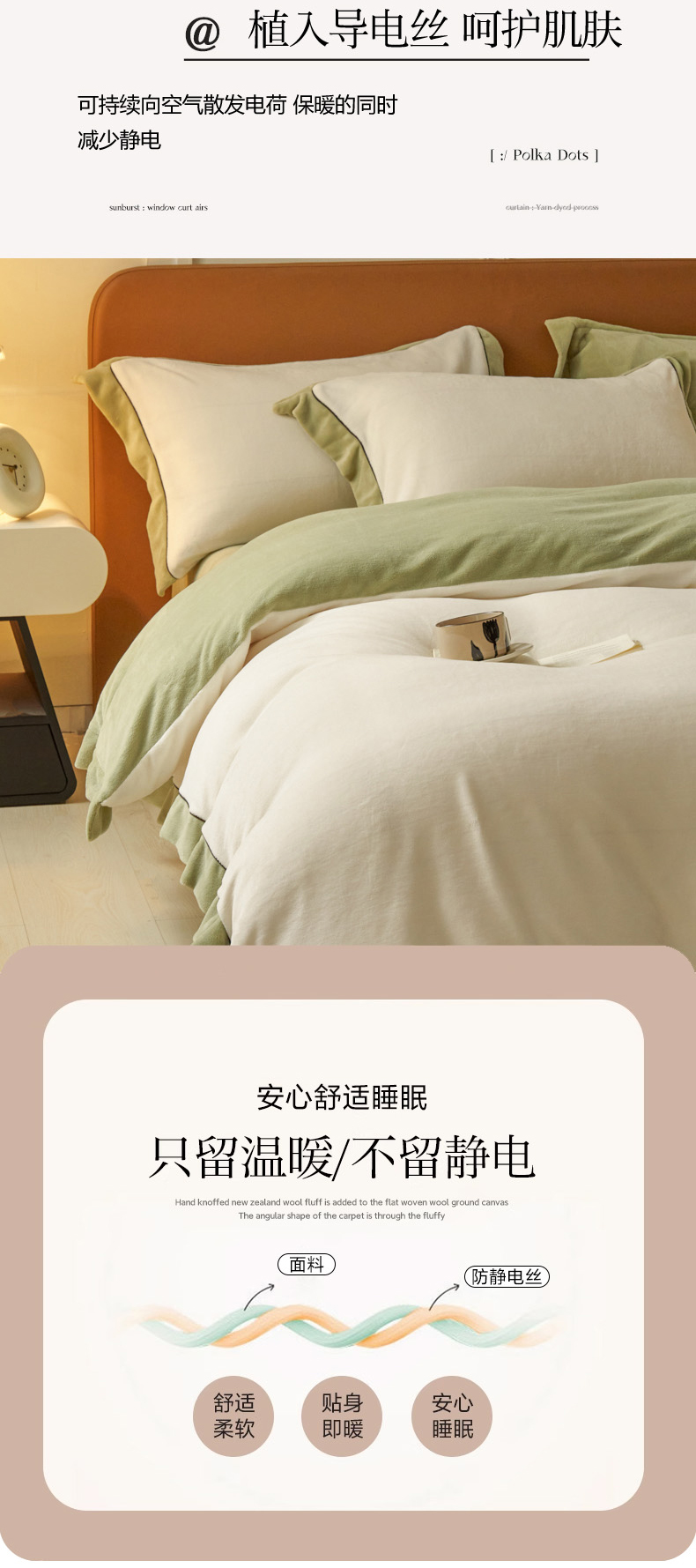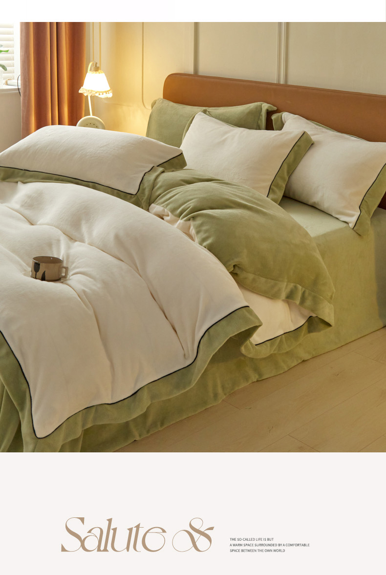 当前位置: 91家纺网 > 商品网购 > 床品套件 > 四件套 > 牛奶绒四件套 > 万盛家纺 2025新款牛奶绒拼色宽边四件套 香草白-抹茶绿