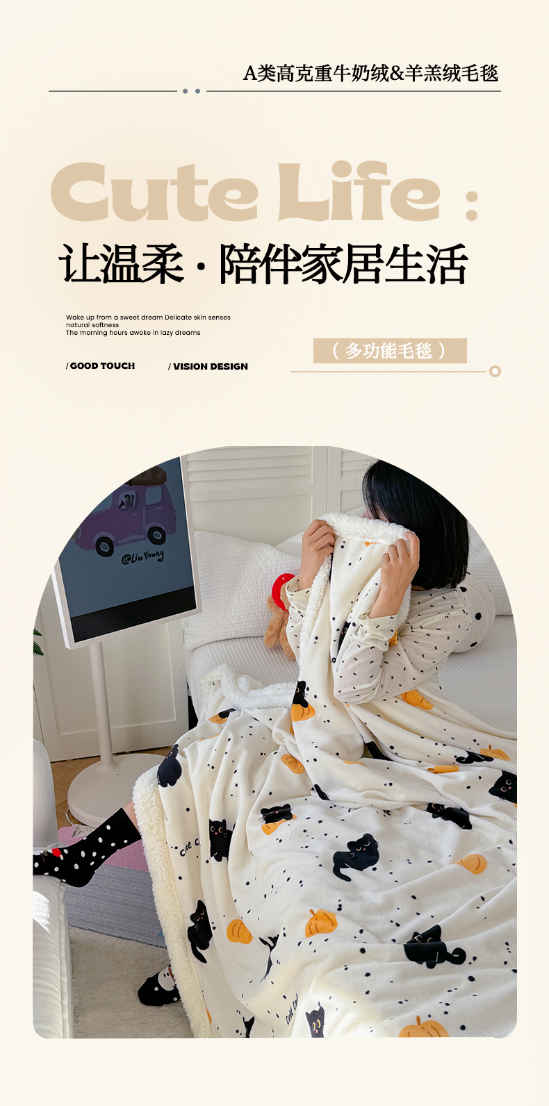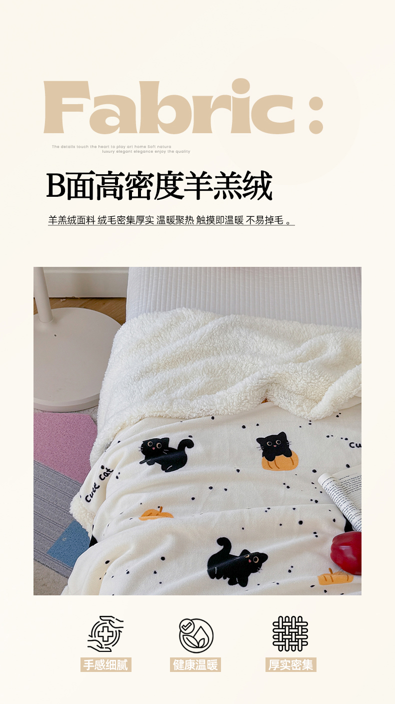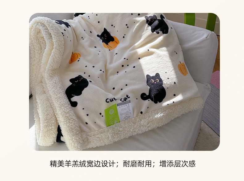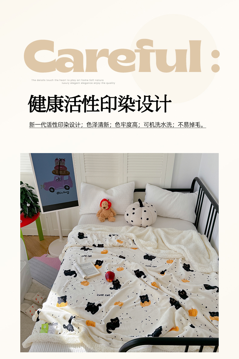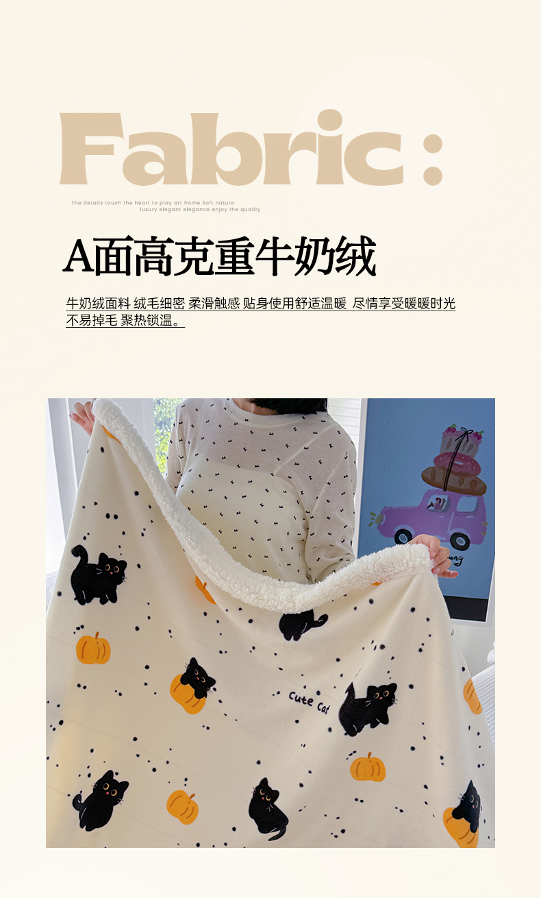 商品名称:吉象家纺 2024新款高克重牛奶绒羊羔绒印花毛毯 南瓜猫
