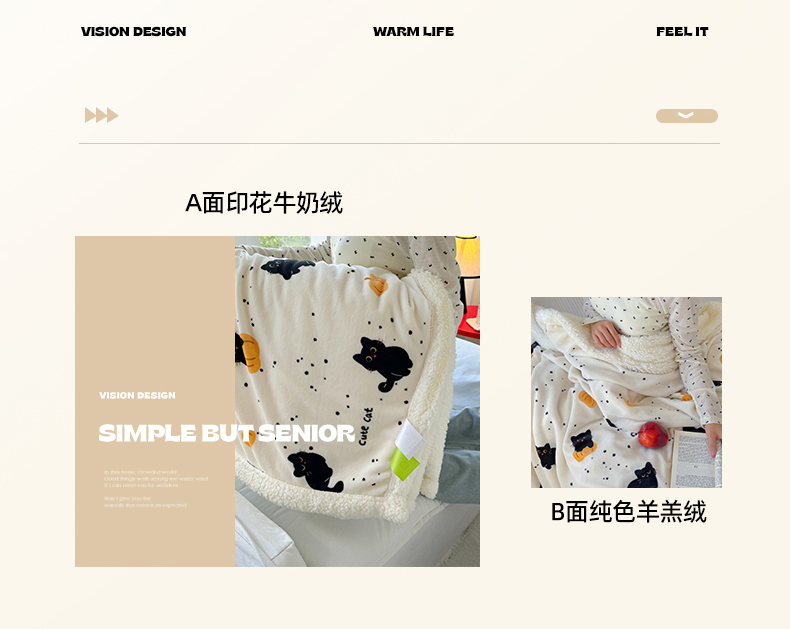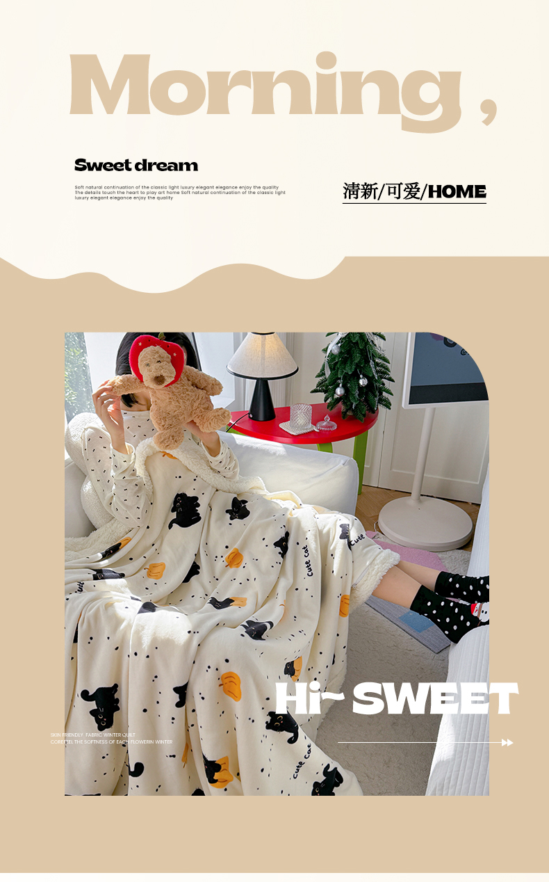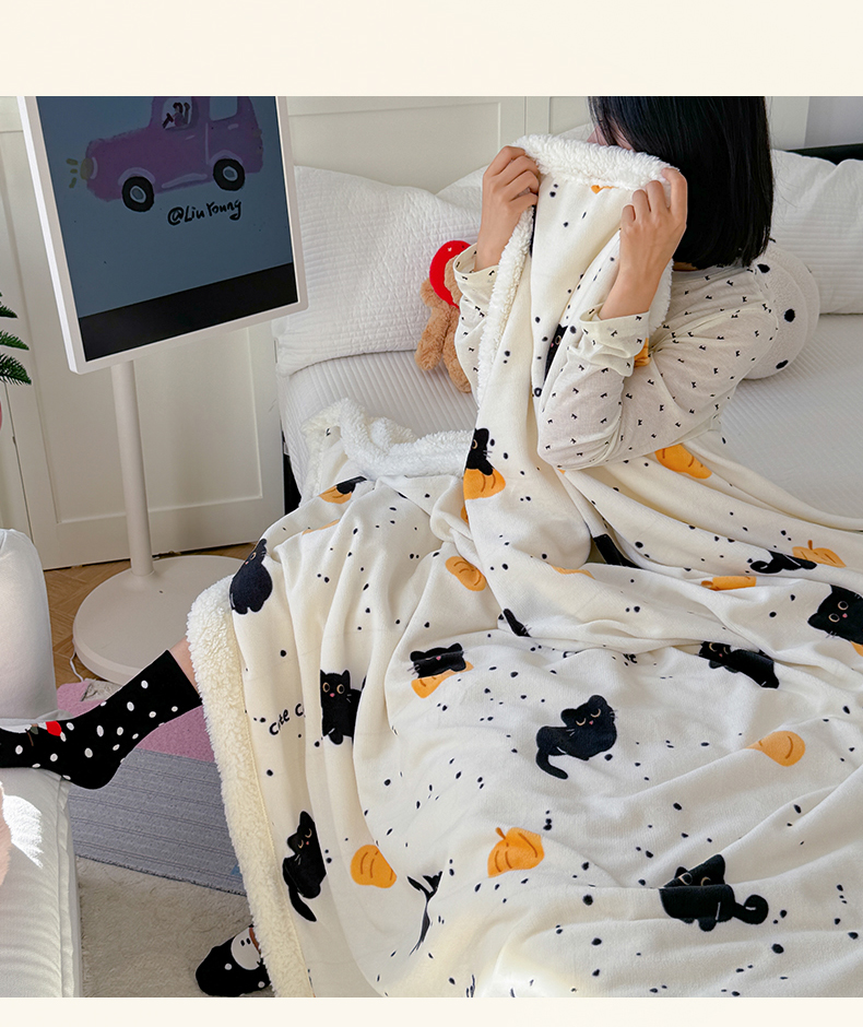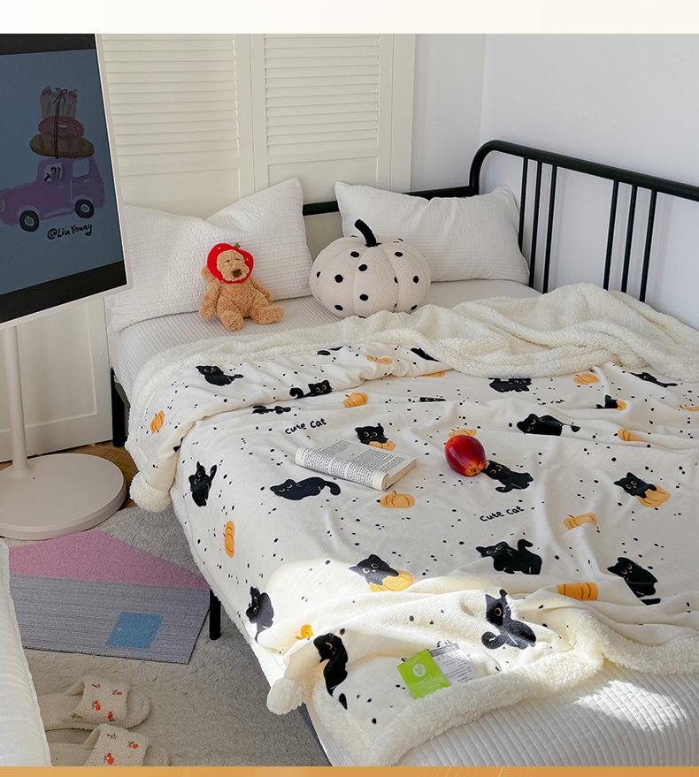 吉象家纺 2024新款高克重牛奶绒羊羔绒印花毛毯 南瓜猫