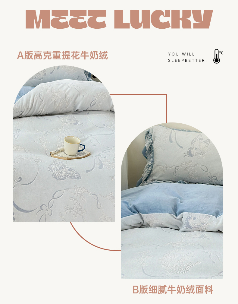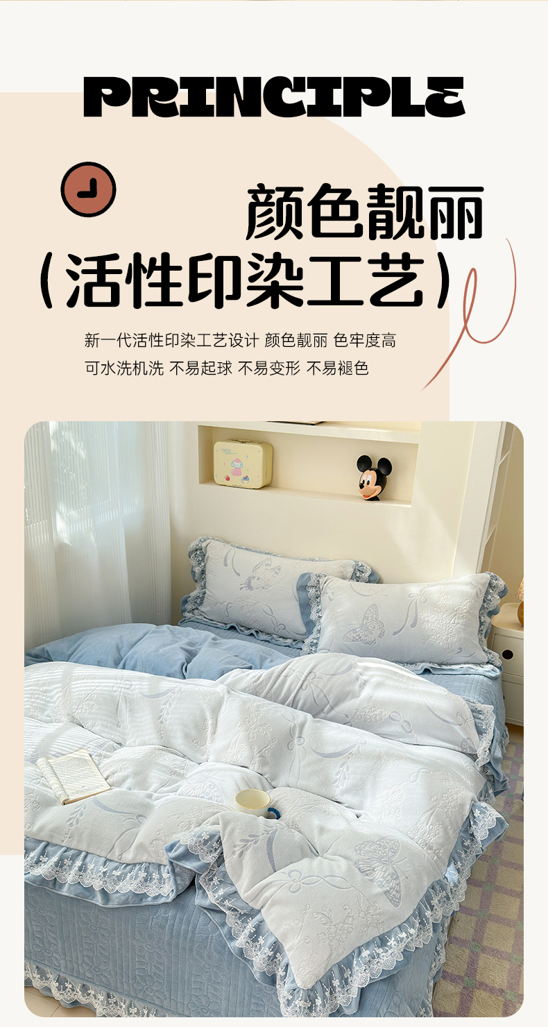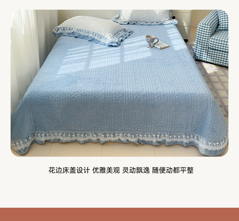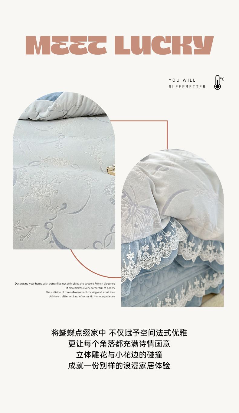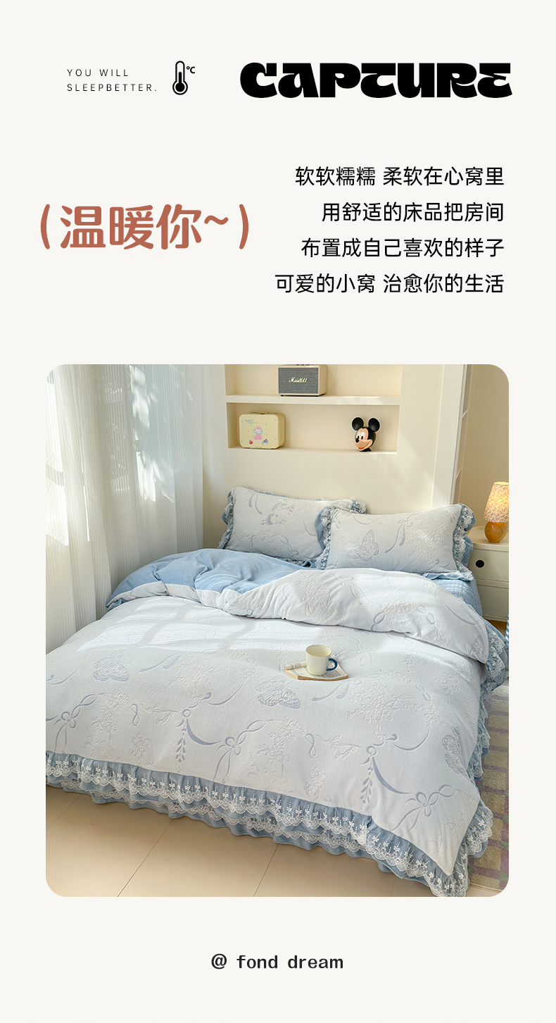 淑女公社家纺 2024秋冬新款提花牛奶绒床盖款四件套 蝴蝶 蓝色