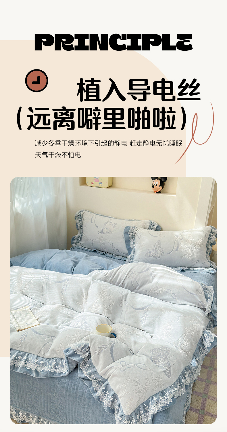 商品名称:淑女公社家纺 2024秋冬新款提花牛奶绒床盖款四件套 蝴蝶 蓝色